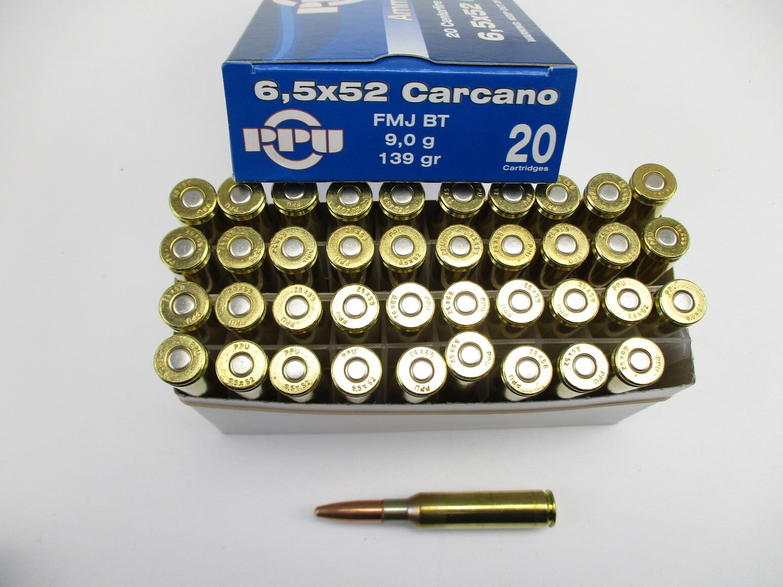PPU 6.5X52 CARCANO AMMO, 40 RNDS, 139 GRNS (STATED ON BOX, NOT CONFIRMED), FMJ BT, THERE ARE NEW SHIPPING RESTRICTIONS, PLEASE MAKE SURE YOU HAVE READ AND CONFIRMED WE CAN SHIP TO YOU BEFORE BIDDING ON THIS LOT. PLEASE SEE LOT 0 IN THIS SESSION. NO REFUNDS WILL BE ISSUED, OR BIDS RETRACTED