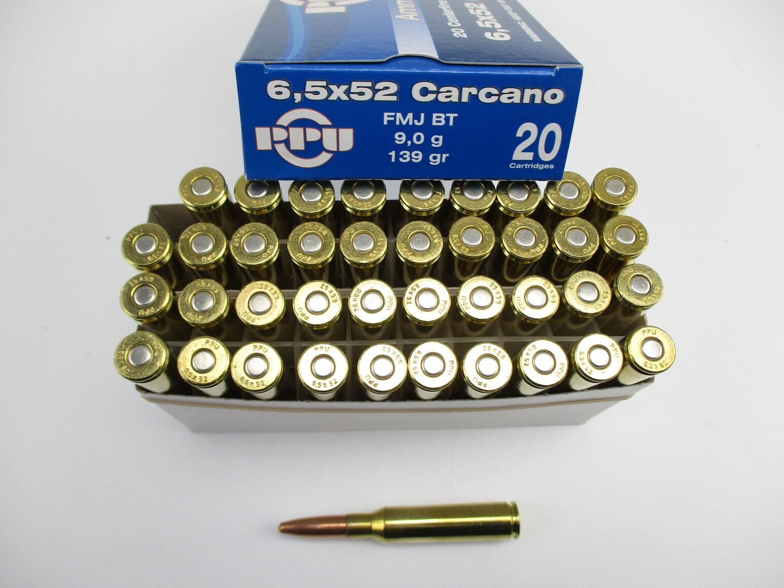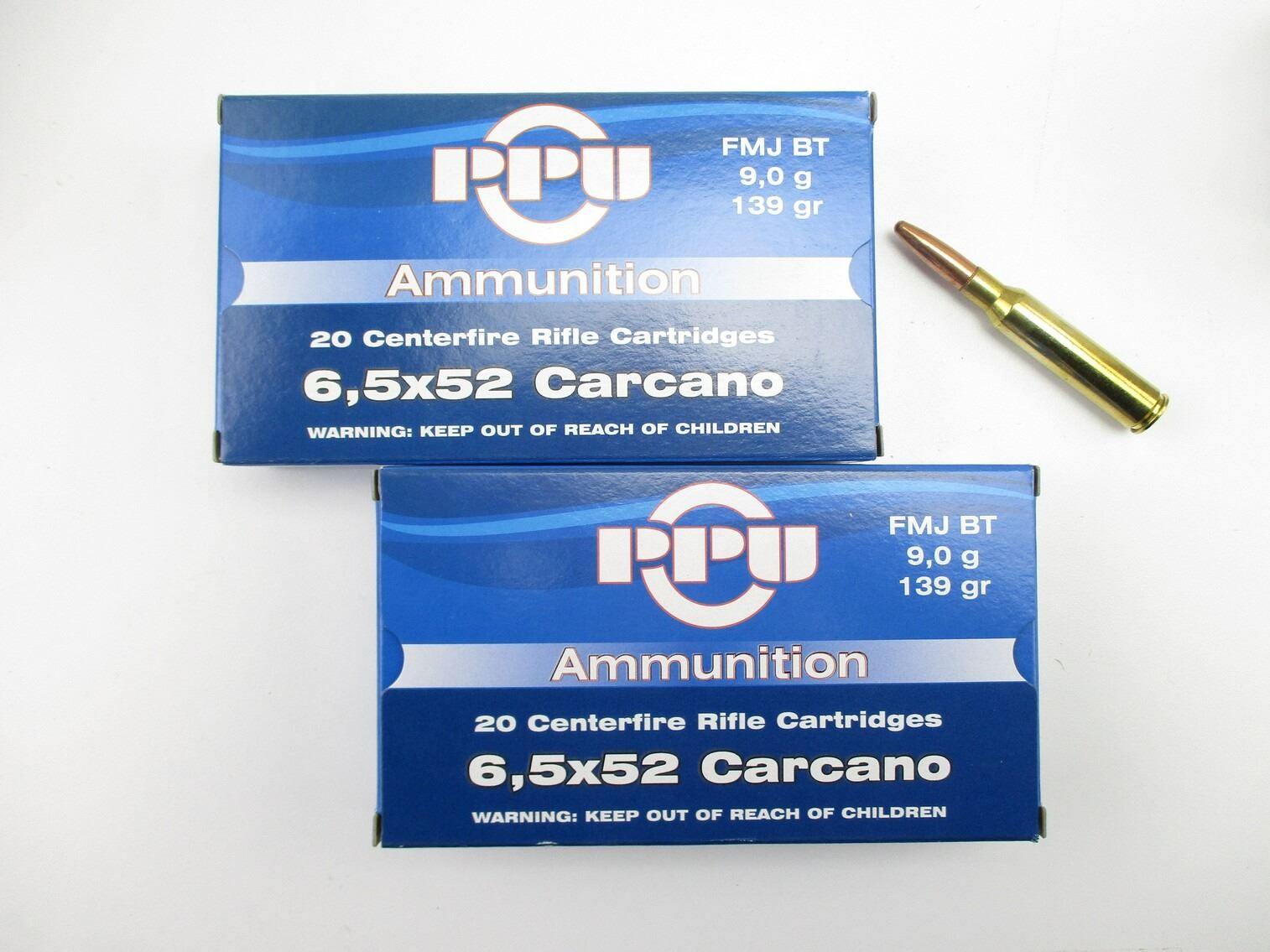 PPU 6.5X52 CARCANO AMMO, 40 RNDS, 139 GRNS (STATED ON BOX, NOT CONFIRMED), FMJ BT, THERE ARE NEW SHIPPING RESTRICTIONS, PLEASE MAKE SURE YOU HAVE READ AND CONFIRMED WE CAN SHIP TO YOU BEFORE BIDDING ON THIS LOT. PLEASE SEE LOT 0 IN THIS SESSION. NO REFUNDS WILL BE ISSUED, OR BIDS RETRACTED