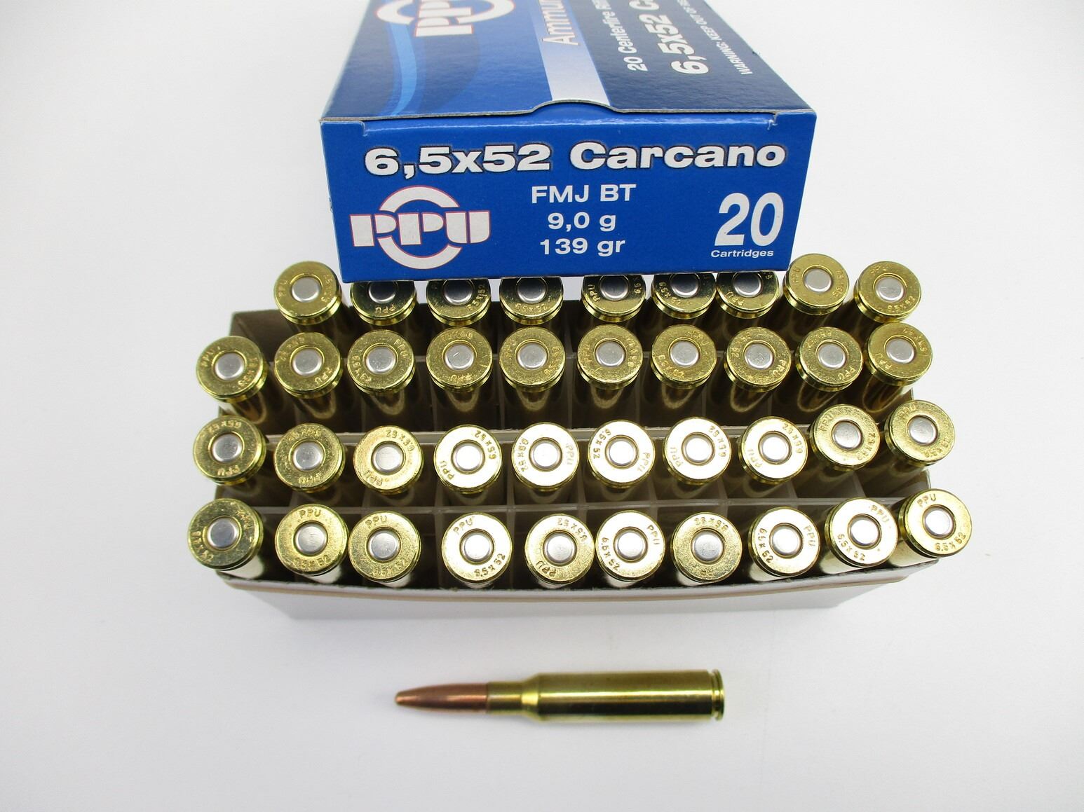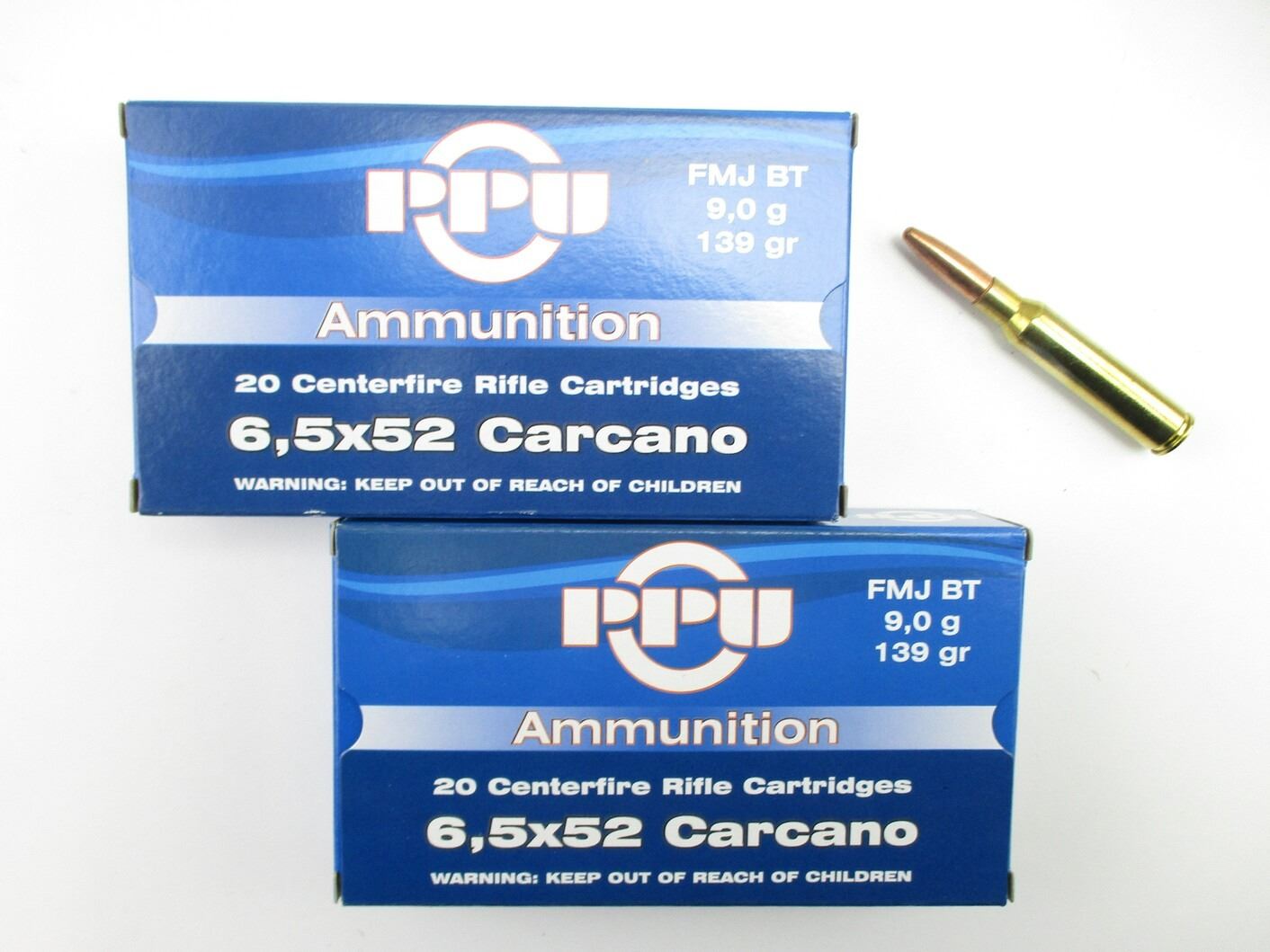 PPU 6.5X52 CARCANO AMMO, 40 RNDS, 139 GRNS (STATED ON BOX, NOT CONFIRMED), FMJ BT, THERE ARE NEW SHIPPING RESTRICTIONS, PLEASE MAKE SURE YOU HAVE READ AND CONFIRMED WE CAN SHIP TO YOU BEFORE BIDDING ON THIS LOT. PLEASE SEE LOT 0 IN THIS SESSION. NO REFUNDS WILL BE ISSUED, OR BIDS RETRACTED