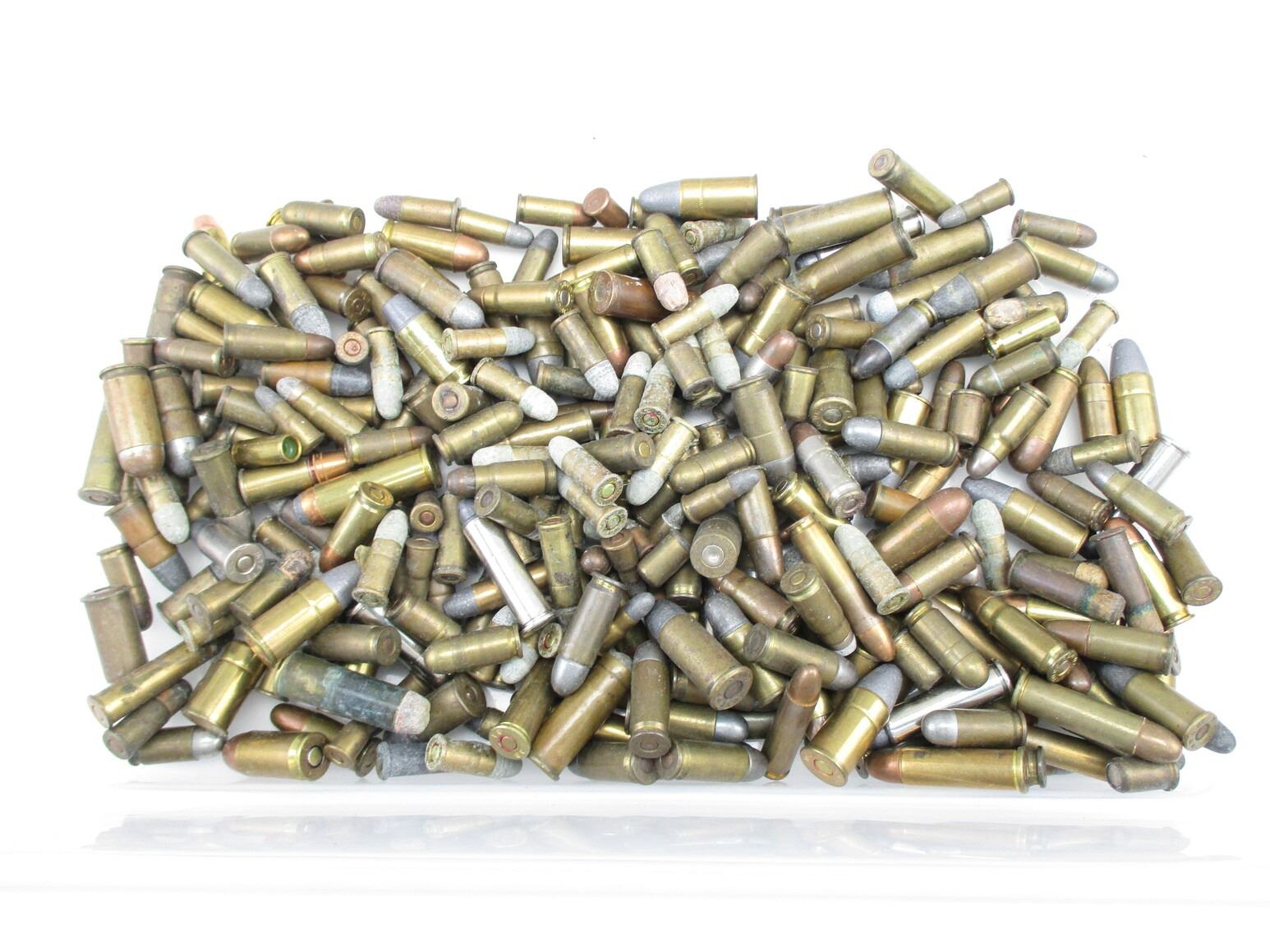 ASSORTED PISTOL AMMO LOT, APPROX 7.5 LBS, VARIOUS CALIBERS INCLUDING: .455 COLT, 9MM, .357 MAG, .30 MAUSER, ETC., LOT MAY INCLUDE: BRASS, MILITARY, BLANKS, DUMMY'S, DAMAGED RNDS, ETC., THERE ARE NEW SHIPPING RESTRICTIONS, PLEASE MAKE SURE YOU HAVE READ AND CONFIRMED WE CAN SHIP TO YOU BEFORE BIDDING ON THIS LOT. PLEASE SEE LOT 0 IN THIS SESSION. NO REFUNDS WILL BE ISSUED, OR BIDS RETRACTED