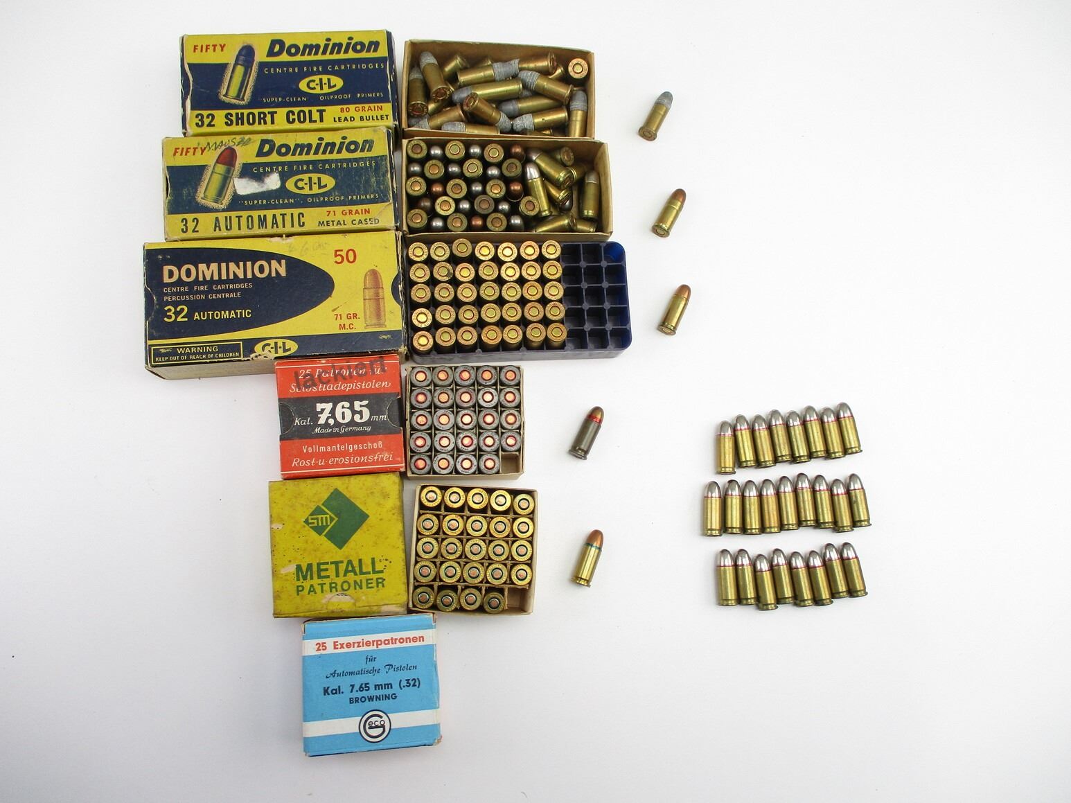 ASSORTED .32 AUTO AMMO, 210 RNDS, VARIOUS MFG'S INCLUDING: CIL DOMINION, GECO, ETC., THERE ARE NEW SHIPPING RESTRICTIONS, PLEASE MAKE SURE YOU HAVE READ AND CONFIRMED WE CAN SHIP TO YOU BEFORE BIDDING ON THIS LOT. PLEASE SEE LOT 0 IN THIS SESSION. NO REFUNDS WILL BE ISSUED, OR BIDS RETRACTED