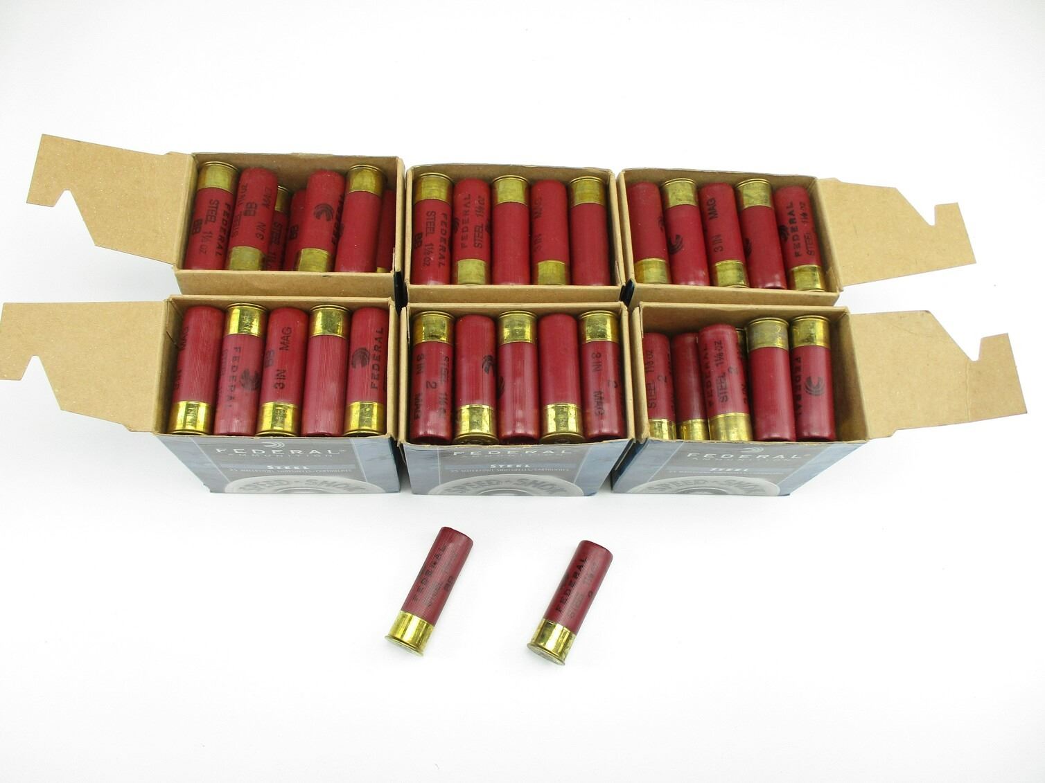 FEDERAL 12 GAUGE SHOTSHELLS LOT, 149 RNDS, 3", BB SHOT AND #2 SHOT, THERE ARE NEW SHIPPING RESTRICTIONS, PLEASE MAKE SURE YOU HAVE READ AND CONFIRMED WE CAN SHIP TO YOU BEFORE BIDDING ON THIS LOT. PLEASE SEE LOT 0 IN THIS SESSION. NO REFUNDS WILL BE ISSUED, OR BIDS RETRACTED