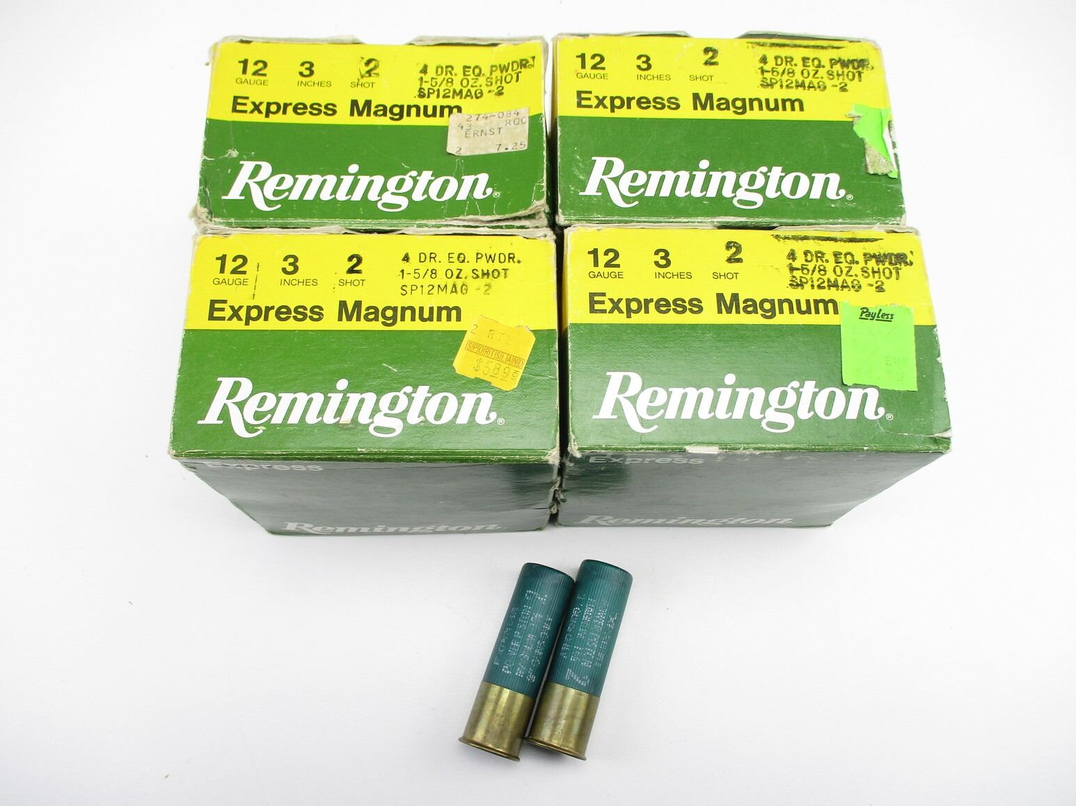 REMINGTON 12 GAUGE SHOTSHELLS LOT, 95 RNDS, 3", #2 SHOT, THERE ARE NEW SHIPPING RESTRICTIONS, PLEASE MAKE SURE YOU HAVE READ AND CONFIRMED WE CAN SHIP TO YOU BEFORE BIDDING ON THIS LOT. PLEASE SEE LOT 0 IN THIS SESSION. NO REFUNDS WILL BE ISSUED, OR BIDS RETRACTED
