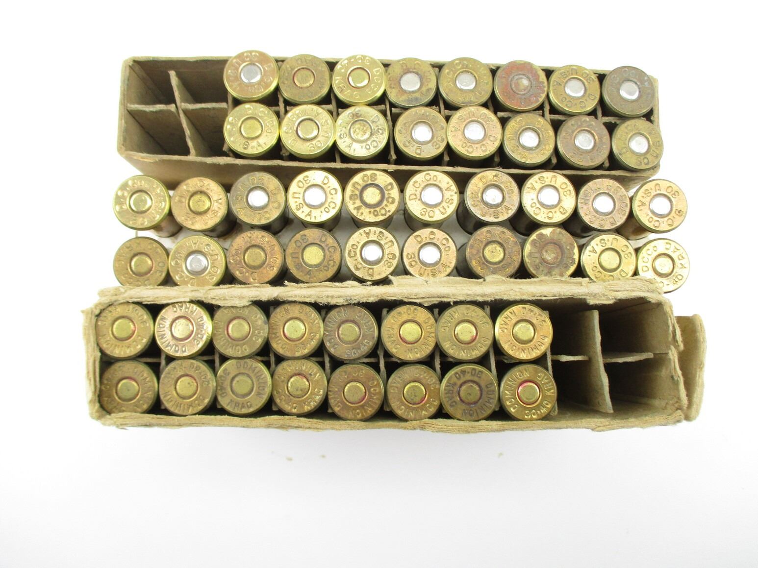 DOMINION ASSORTED .30-40 KRAG AMMO, 52 RNDS, MAY INCLUDE OTHER MFG'S, VARIOUS BULLET TYPES, THERE ARE NEW SHIPPING RESTRICTIONS, PLEASE MAKE SURE YOU HAVE READ AND CONFIRMED WE CAN SHIP TO YOU BEFORE BIDDING ON THIS LOT. PLEASE SEE LOT 0 IN THIS SESSION. NO REFUNDS WILL BE ISSUED, OR BIDS RETRACTED