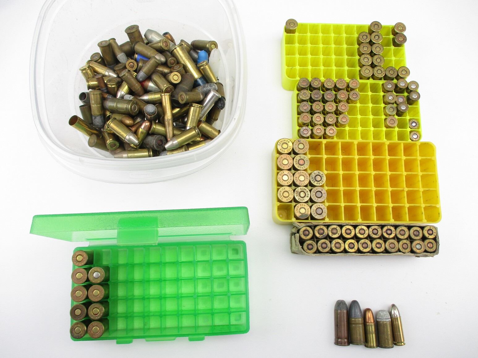 ASSORTED PISTOL AMMO LOT, APPROX 175 RNDS, VARIOUS CALIBERS INCLUDING: .455 COLT, .380 AUTO, 9MM, .45 WEBLEY, ETC., LOT INCLUDES: BRASS, DUMMY RNDS, BLANKS, DAMAGED RNDS, MILITARY RNDS, ETC., , THERE ARE NEW SHIPPING RESTRICTIONS, PLEASE MAKE SURE YOU HAVE READ AND CONFIRMED WE CAN SHIP TO YOU BEFORE BIDDING ON THIS LOT. PLEASE SEE LOT 0 IN THIS SESSION. NO REFUNDS WILL BE ISSUED, OR BIDS RETRACTED