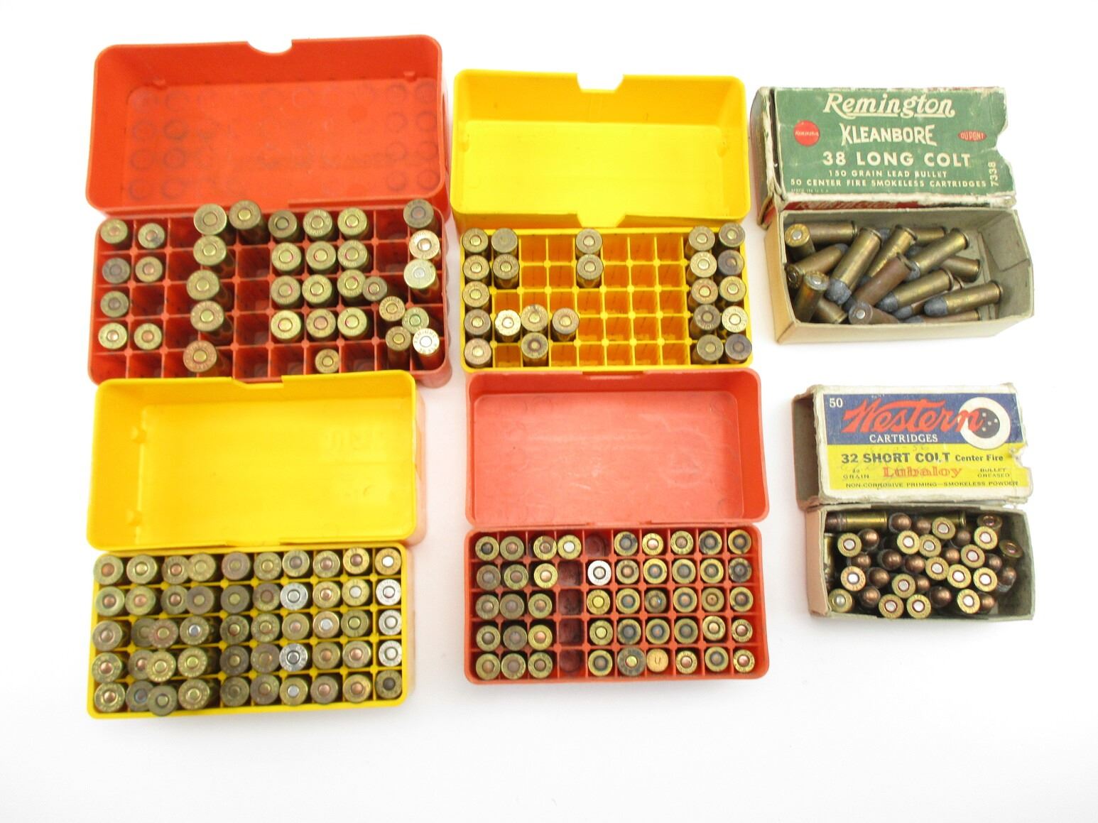 ASSORTED PISTOL AMMO LOT, 210 RNDS, VARIOUS CALIBERS INCLUDING: .38 LONG COLT, .32 SHORT COLT, .38 SPECIAL, .380 AUTO, ETC., THERE ARE NEW SHIPPING RESTRICTIONS, PLEASE MAKE SURE YOU HAVE READ AND CONFIRMED WE CAN SHIP TO YOU BEFORE BIDDING ON THIS LOT. PLEASE SEE LOT 0 IN THIS SESSION. NO REFUNDS WILL BE ISSUED, OR BIDS RETRACTED