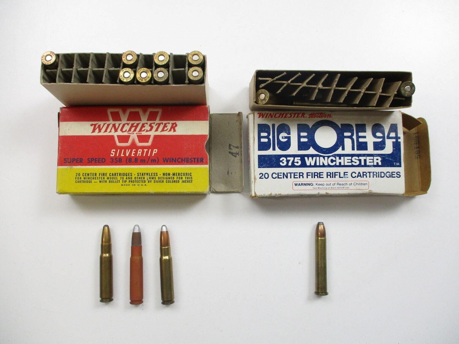 ASSORTED .358 WIN AND .375 WIN AMMO, 16 RNDS, WINCHESTER, & NORMA MFG'S, THERE ARE NEW SHIPPING RESTRICTIONS, PLEASE MAKE SURE YOU HAVE READ AND CONFIRMED WE CAN SHIP TO YOU BEFORE BIDDING ON THIS LOT. PLEASE SEE LOT 0 IN THIS SESSION. NO REFUNDS WILL BE ISSUED, OR BIDS RETRACTED
