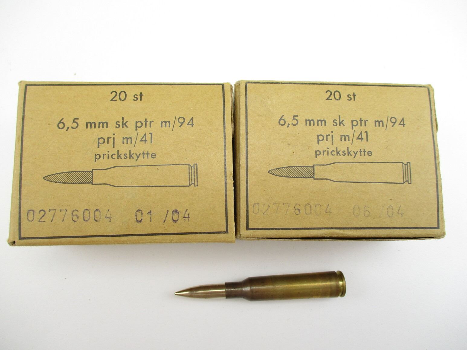 MILITARY 6.5X55 SWEDISH AMMO, 40 RNDS, BOX HAS VARIOUS MARKINGS, THERE ARE NEW SHIPPING RESTRICTIONS, PLEASE MAKE SURE YOU HAVE READ AND CONFIRMED WE CAN SHIP TO YOU BEFORE BIDDING ON THIS LOT. PLEASE SEE LOT 0 IN THIS SESSION. NO REFUNDS WILL BE ISSUED, OR BIDS RETRACTED
