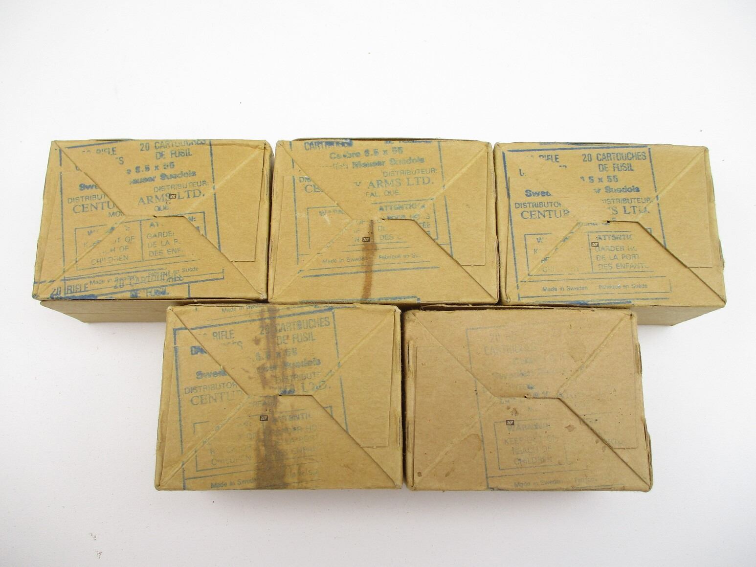 MILITARY 6.5X55 SWEDISH AMMO, 100 RNDS, BOX HAS VARIOUS MARKINGS, THERE ARE NEW SHIPPING RESTRICTIONS, PLEASE MAKE SURE YOU HAVE READ AND CONFIRMED WE CAN SHIP TO YOU BEFORE BIDDING ON THIS LOT. PLEASE SEE LOT 0 IN THIS SESSION. NO REFUNDS WILL BE ISSUED, OR BIDS RETRACTED