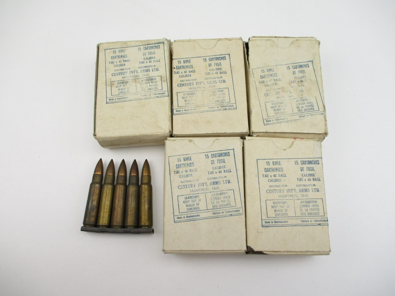 MILITARY CZECH 7.62X45 AMMO, 75 RNDS, (15) STRIPPER CLIPS, THERE ARE NEW SHIPPING RESTRICTIONS, PLEASE MAKE SURE YOU HAVE READ AND CONFIRMED WE CAN SHIP TO YOU BEFORE BIDDING ON THIS LOT. PLEASE SEE LOT 0 IN THIS SESSION. NO REFUNDS WILL BE ISSUED, OR BIDS RETRACTED