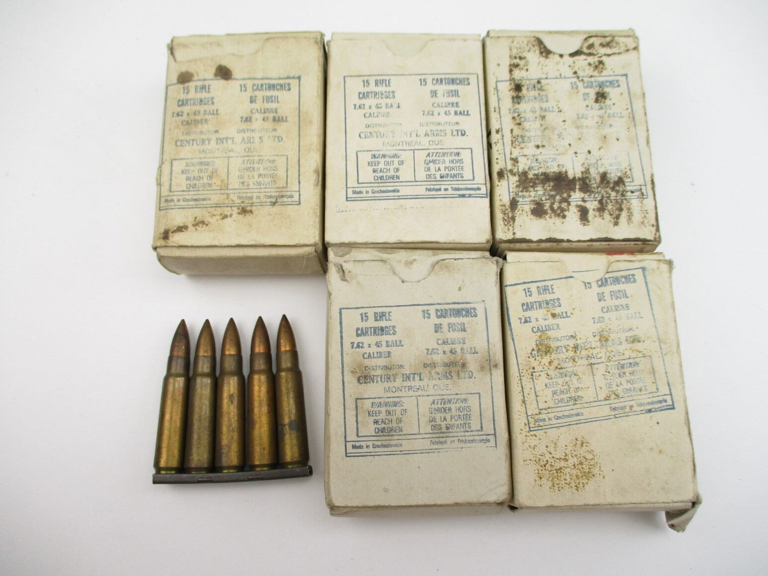 MILITARY CZECH 7.62X45 AMMO, 75 RNDS, (15) STRIPPER CLIPS, THERE ARE NEW SHIPPING RESTRICTIONS, PLEASE MAKE SURE YOU HAVE READ AND CONFIRMED WE CAN SHIP TO YOU BEFORE BIDDING ON THIS LOT. PLEASE SEE LOT 0 IN THIS SESSION. NO REFUNDS WILL BE ISSUED, OR BIDS RETRACTED