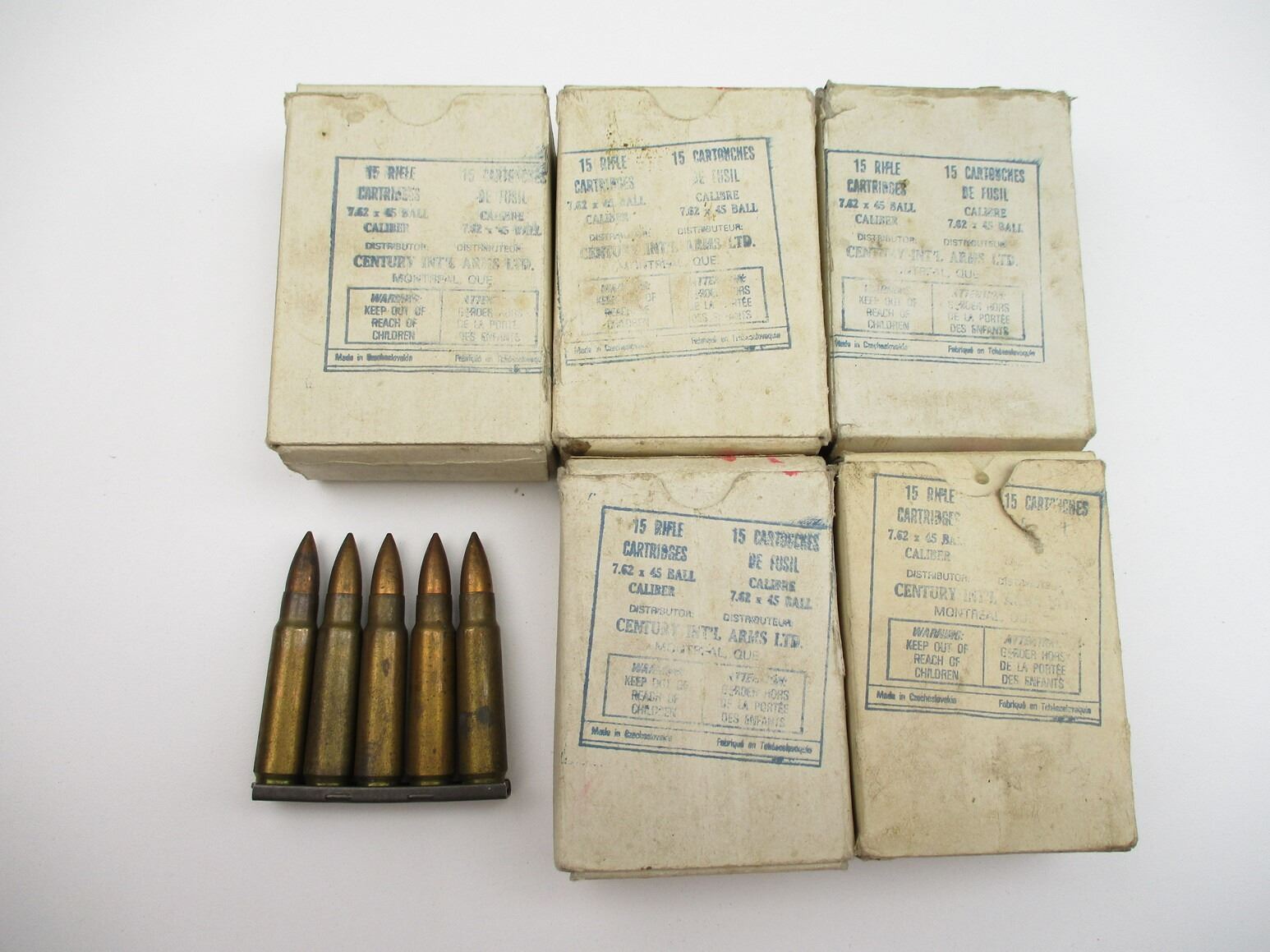 MILITARY CZECH 7.62X45 AMMO, 75 RNDS, (15) STRIPPER CLIPS, THERE ARE NEW SHIPPING RESTRICTIONS, PLEASE MAKE SURE YOU HAVE READ AND CONFIRMED WE CAN SHIP TO YOU BEFORE BIDDING ON THIS LOT. PLEASE SEE LOT 0 IN THIS SESSION. NO REFUNDS WILL BE ISSUED, OR BIDS RETRACTED