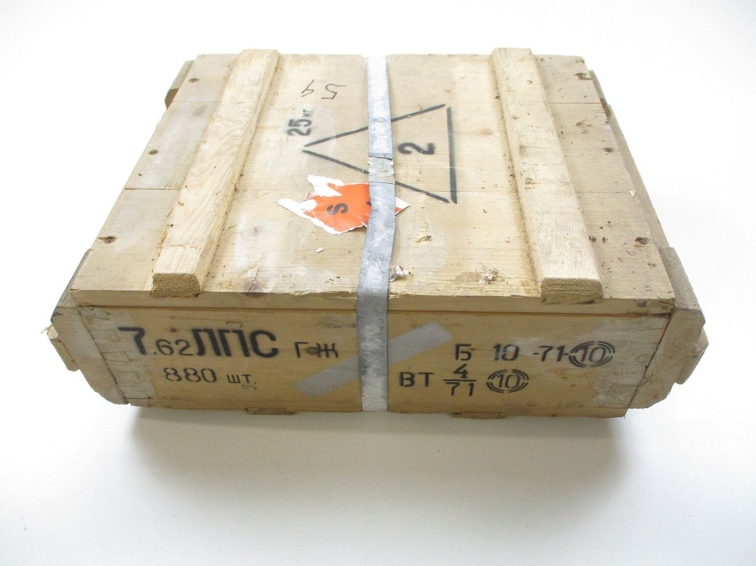 MILITARY 7.62X54R WOODEN CRATE LOT, 880 RNDS, APPROX 20" X 13.5" X 6", THERE ARE NEW SHIPPING RESTRICTIONS, PLEASE MAKE SURE YOU HAVE READ AND CONFIRMED WE CAN SHIP TO YOU BEFORE BIDDING ON THIS LOT. PLEASE SEE LOT 0 IN THIS SESSION. NO REFUNDS WILL BE ISSUED, OR BIDS RETRACTED