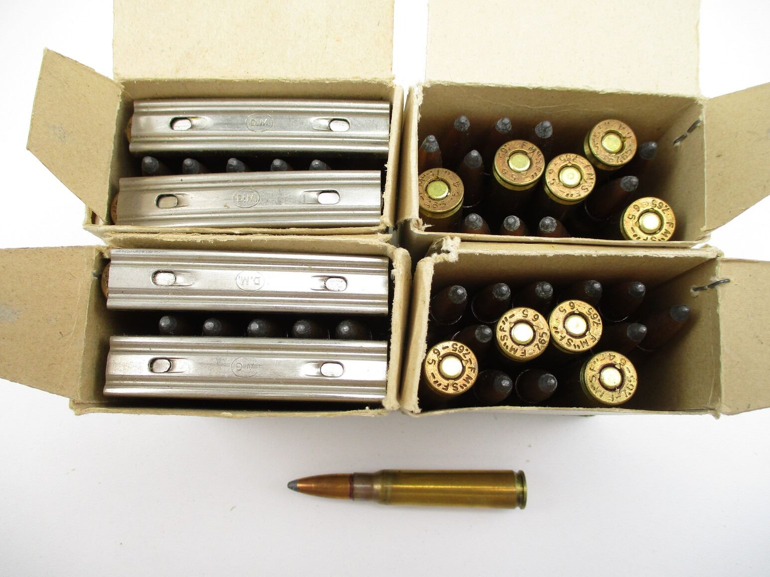MILITARY FM 7.65 ARGENTINE AMMO, 60 RNDS, (6) STRIPPER CLIPS, THERE ARE NEW SHIPPING RESTRICTIONS, PLEASE MAKE SURE YOU HAVE READ AND CONFIRMED WE CAN SHIP TO YOU BEFORE BIDDING ON THIS LOT. PLEASE SEE LOT 0 IN THIS SESSION. NO REFUNDS WILL BE ISSUED, OR BIDS RETRACTED
