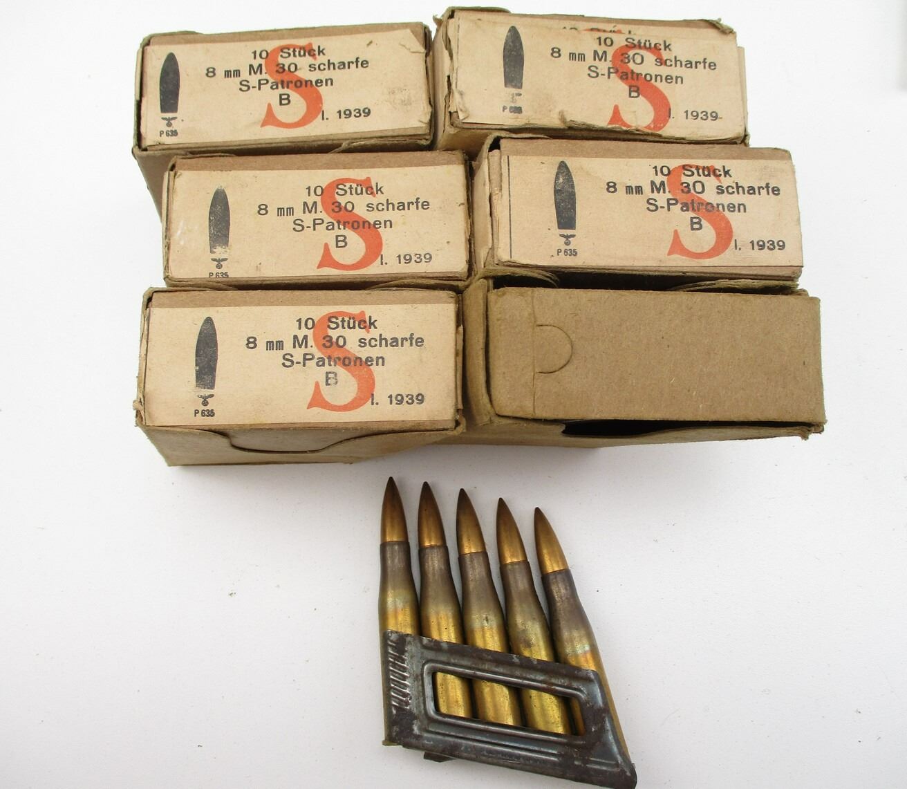 MILITARY 8X56R AMMO, 60 RNDS, 12 STRIPPER CLIPS, (5) BOXES ARE DATED 1939, THERE ARE NEW SHIPPING RESTRICTIONS, PLEASE MAKE SURE YOU HAVE READ AND CONFIRMED WE CAN SHIP TO YOU BEFORE BIDDING ON THIS LOT. PLEASE SEE LOT 0 IN THIS SESSION. NO REFUNDS WILL BE ISSUED, OR BIDS RETRACTED