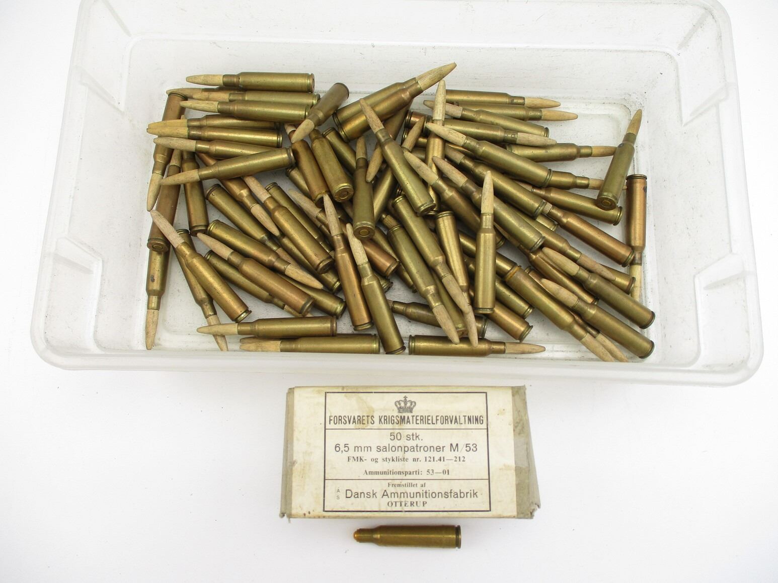 MILITARY ASSORTED 6.5X55 AMMO, 132 RNDS, INCLUDES (82) ASSORTED 6.5X55 WITH WOODEN BULLETS, & (50) 6.5X55 GALLERY RNDS, THERE ARE NEW SHIPPING RESTRICTIONS, PLEASE MAKE SURE YOU HAVE READ AND CONFIRMED WE CAN SHIP TO YOU BEFORE BIDDING ON THIS LOT. PLEASE SEE LOT 0 IN THIS SESSION. NO REFUNDS WILL BE ISSUED, OR BIDS RETRACTED
