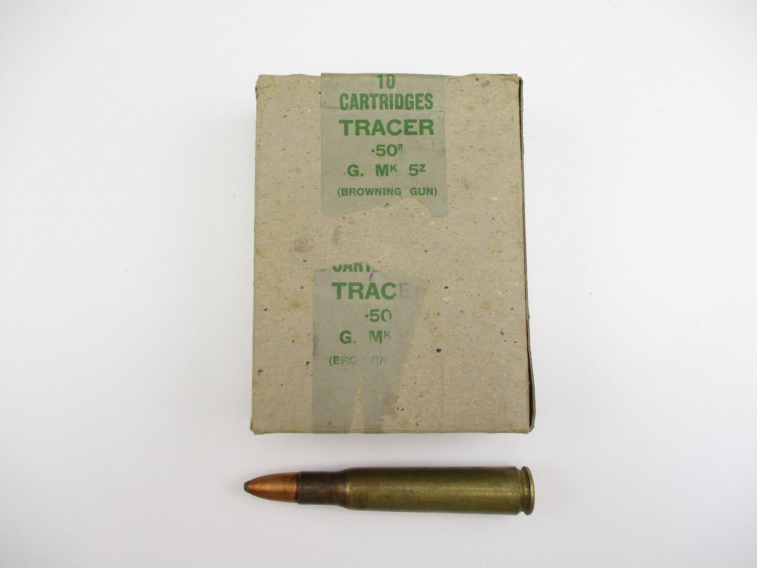 MILITARY .50 M2 TRACERS AMMO LOT, 10 RNDS, BRITISH, BROWNING, ORIGINAL PKG, THERE ARE NEW SHIPPING RESTRICTIONS, PLEASE MAKE SURE YOU HAVE READ AND CONFIRMED WE CAN SHIP TO YOU BEFORE BIDDING ON THIS LOT. PLEASE SEE LOT 0 IN THIS SESSION. NO REFUNDS WILL BE ISSUED, OR BIDS RETRACTED