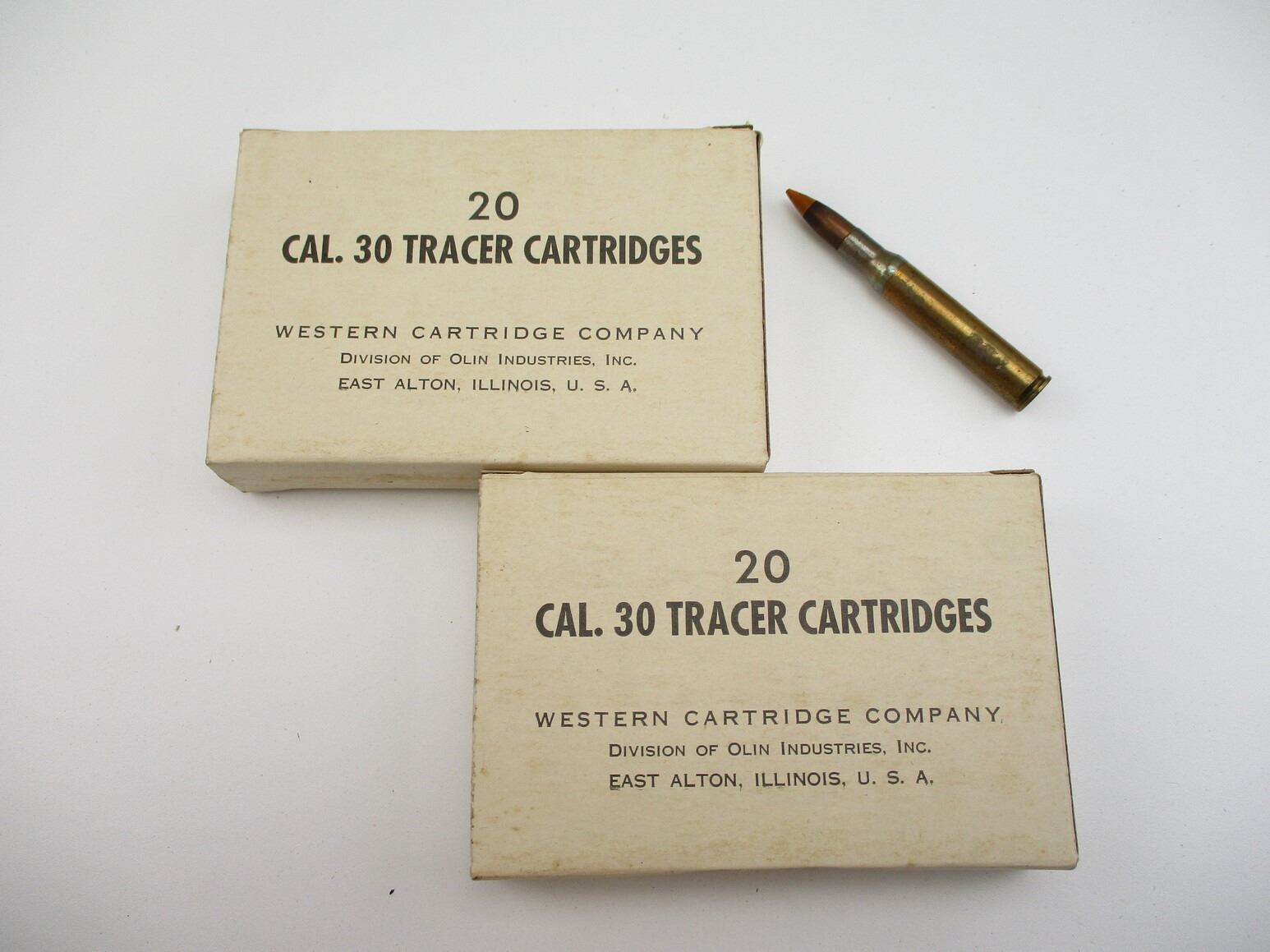 MILITARY .30 TRACER AMMO LOT, 40 RNDS, WESTERN CARTRIDGE CO., THERE ARE NEW SHIPPING RESTRICTIONS, PLEASE MAKE SURE YOU HAVE READ AND CONFIRMED WE CAN SHIP TO YOU BEFORE BIDDING ON THIS LOT. PLEASE SEE LOT 0 IN THIS SESSION. NO REFUNDS WILL BE ISSUED, OR BIDS RETRACTED