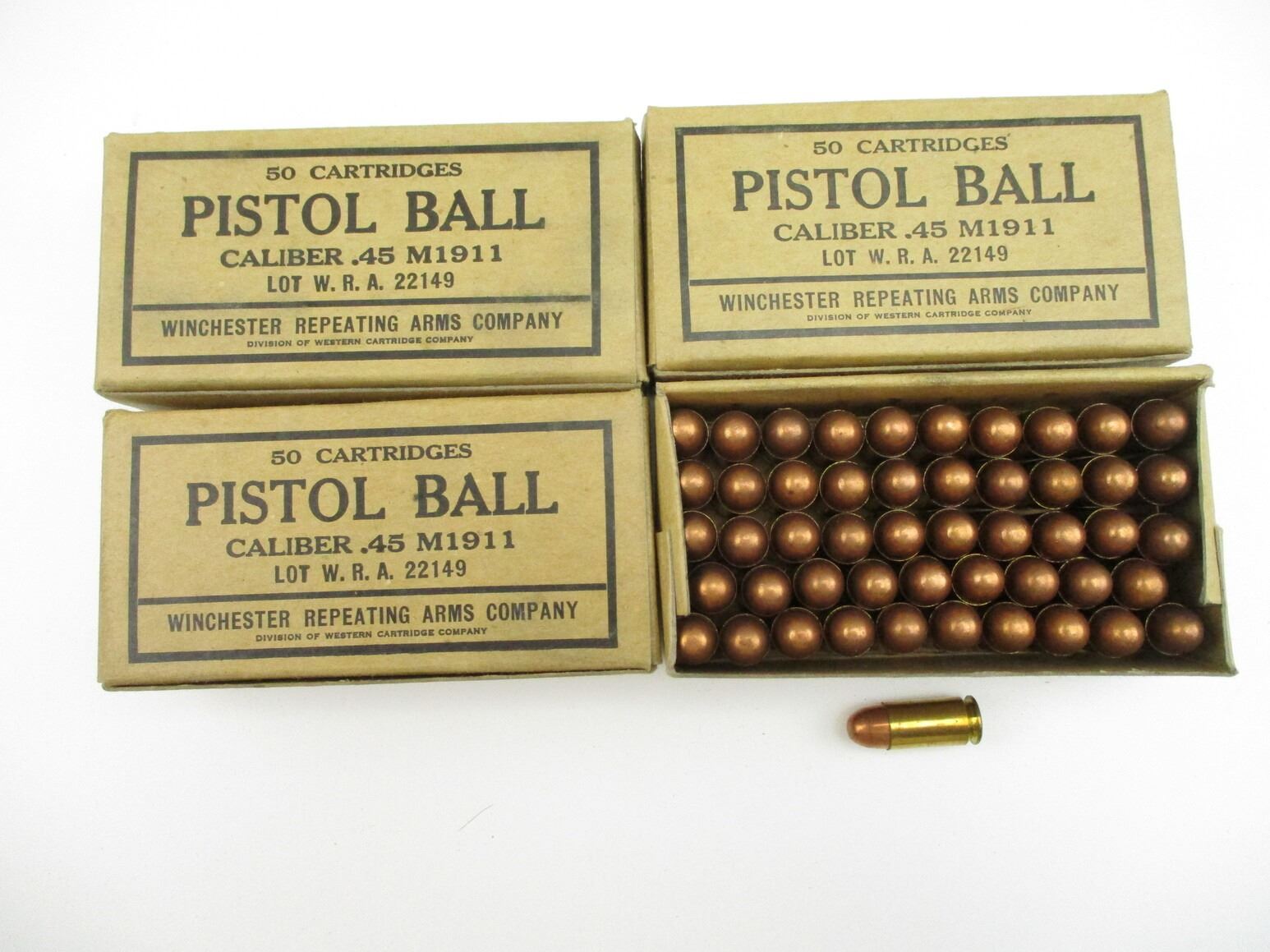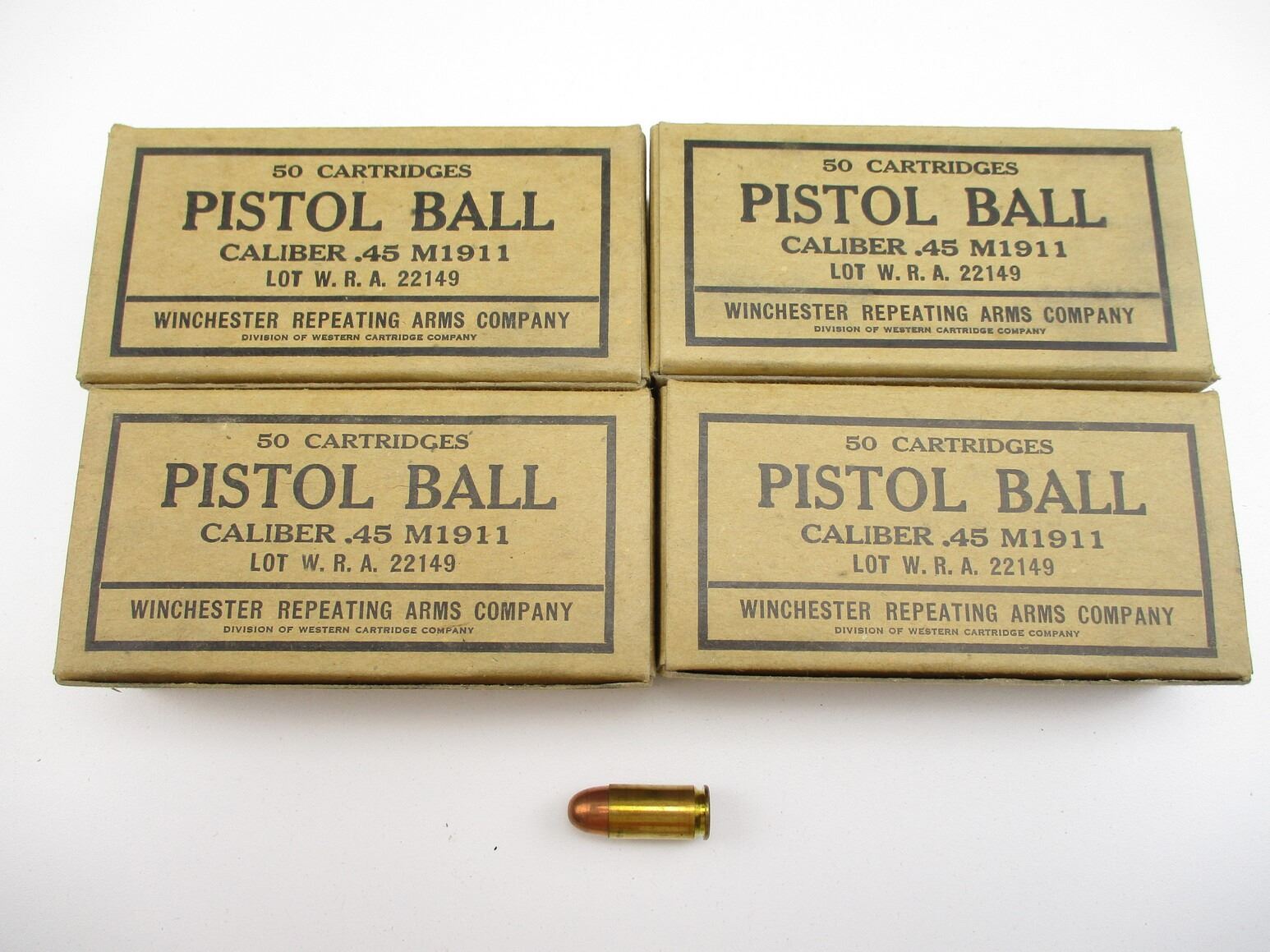 MILITARY .45 ACP AMMO LOT, 200 RNDS, MFG'D BY W.R.A, THERE ARE NEW SHIPPING RESTRICTIONS, PLEASE MAKE SURE YOU HAVE READ AND CONFIRMED WE CAN SHIP TO YOU BEFORE BIDDING ON THIS LOT. PLEASE SEE LOT 0 IN THIS SESSION. NO REFUNDS WILL BE ISSUED, OR BIDS RETRACTED