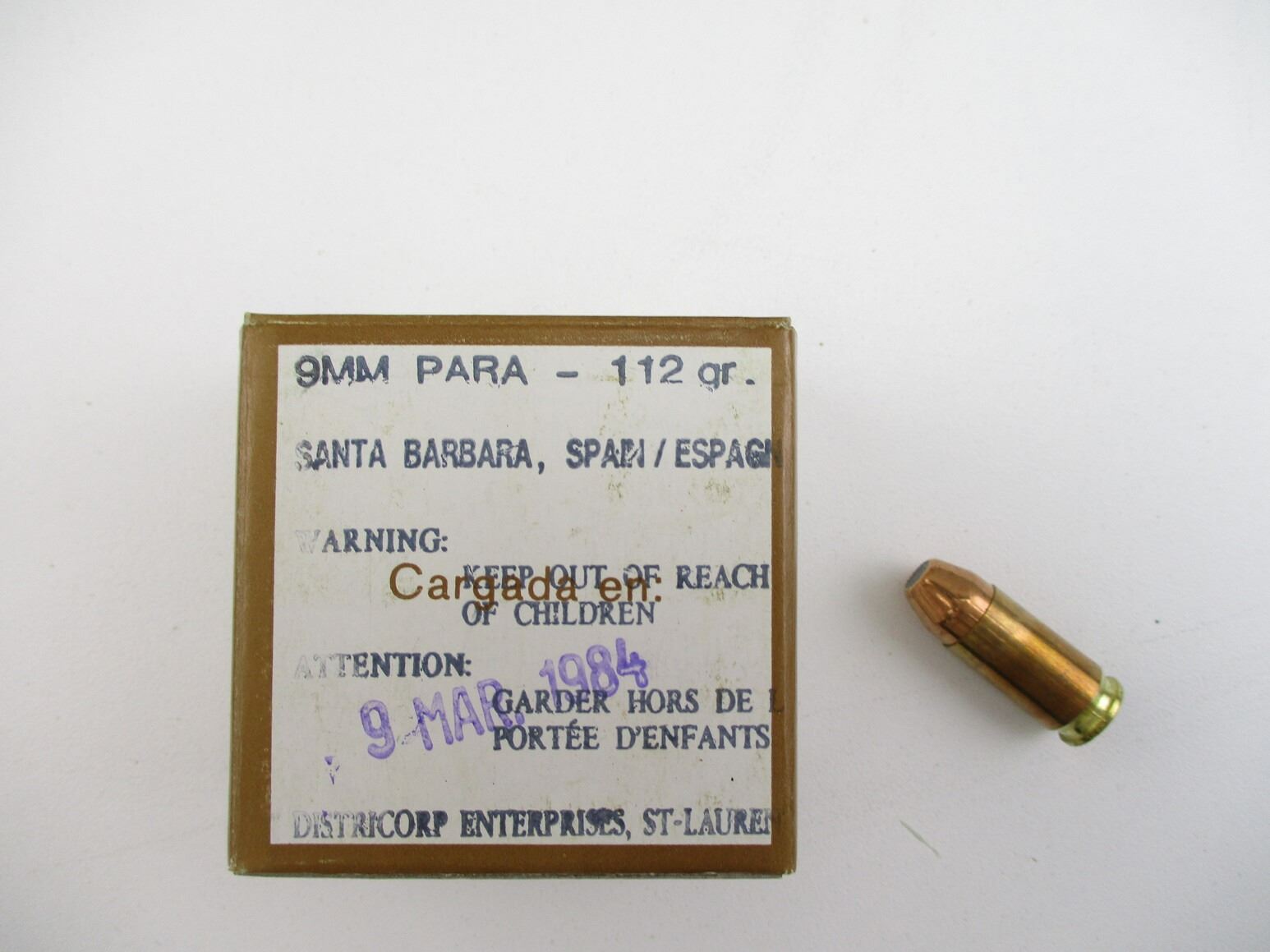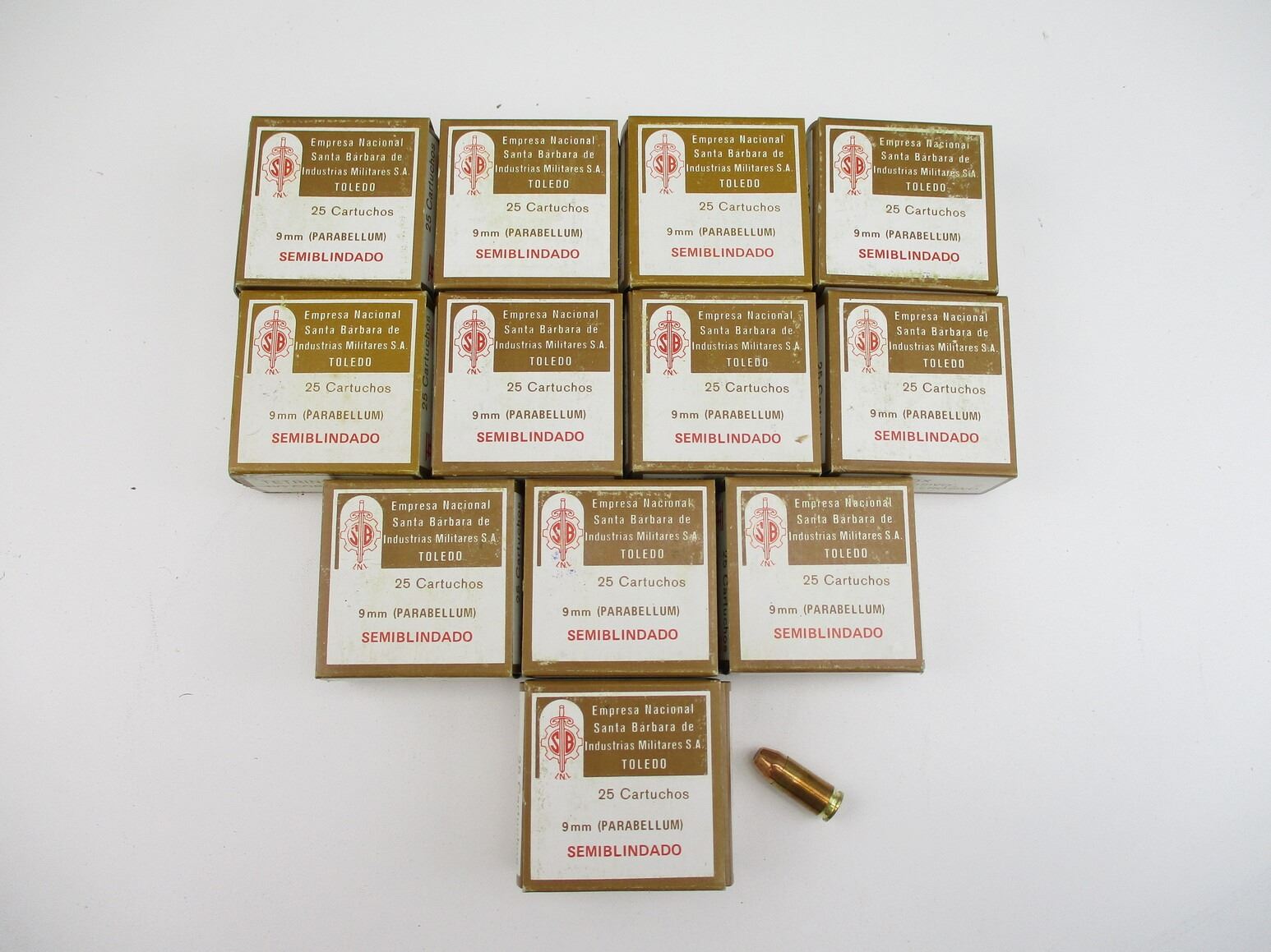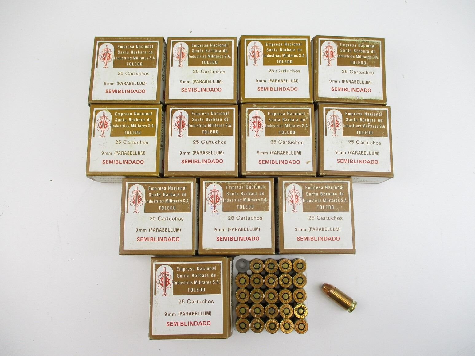 MILITARY 9MM LUGER AMMO LOT, 300 RNDS, 112 GRNS (STATED ON BOXES, NOT CONFIRMED), EMPRESA NACIONAL, THERE ARE NEW SHIPPING RESTRICTIONS, PLEASE MAKE SURE YOU HAVE READ AND CONFIRMED WE CAN SHIP TO YOU BEFORE BIDDING ON THIS LOT. PLEASE SEE LOT 0 IN THIS SESSION. NO REFUNDS WILL BE ISSUED, OR BIDS RETRACTED