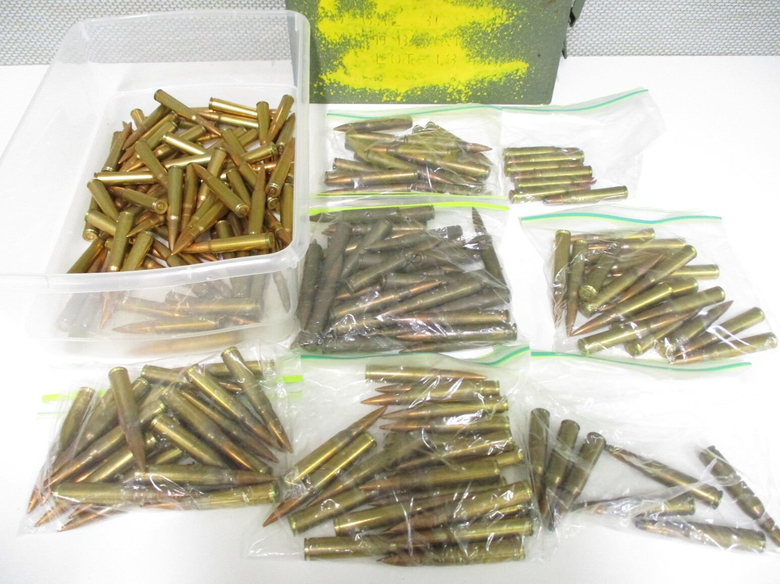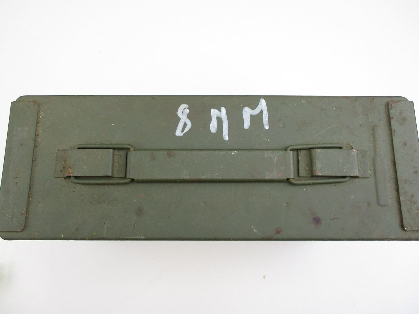 MILITARY 8MM MAUSER AMMO LOT, 213 RNDS FROM MULTIPLE COUNTRIES, INCLUDES METAL AMMO TIN WITH VARIOUS MARKINGS, THERE ARE NEW SHIPPING RESTRICTIONS, PLEASE MAKE SURE YOU HAVE READ AND CONFIRMED WE CAN SHIP TO YOU BEFORE BIDDING ON THIS LOT. PLEASE SEE LOT 0 IN THIS SESSION. NO REFUNDS WILL BE ISSUED, OR BIDS RETRACTED
