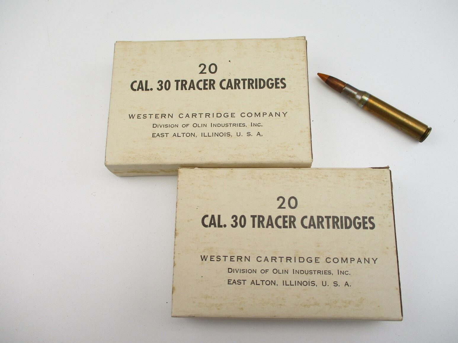 MILITARY .30 TRACER AMMO LOT, 40 RNDS, WESTERN CARTRIDGE CO., THERE ARE NEW SHIPPING RESTRICTIONS, PLEASE MAKE SURE YOU HAVE READ AND CONFIRMED WE CAN SHIP TO YOU BEFORE BIDDING ON THIS LOT. PLEASE SEE LOT 0 IN THIS SESSION. NO REFUNDS WILL BE ISSUED, OR BIDS RETRACTED