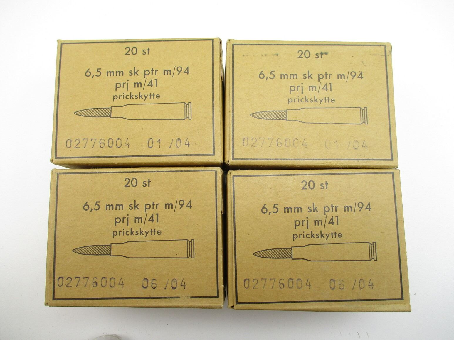 MILITARY 6.5X55 SWEDISH AMMO LOT, 80 RNDS, UNOPENED BOXES, THERE ARE NEW SHIPPING RESTRICTIONS, PLEASE MAKE SURE YOU HAVE READ AND CONFIRMED WE CAN SHIP TO YOU BEFORE BIDDING ON THIS LOT. PLEASE SEE LOT 0 IN THIS SESSION. NO REFUNDS WILL BE ISSUED, OR BIDS RETRACTED
