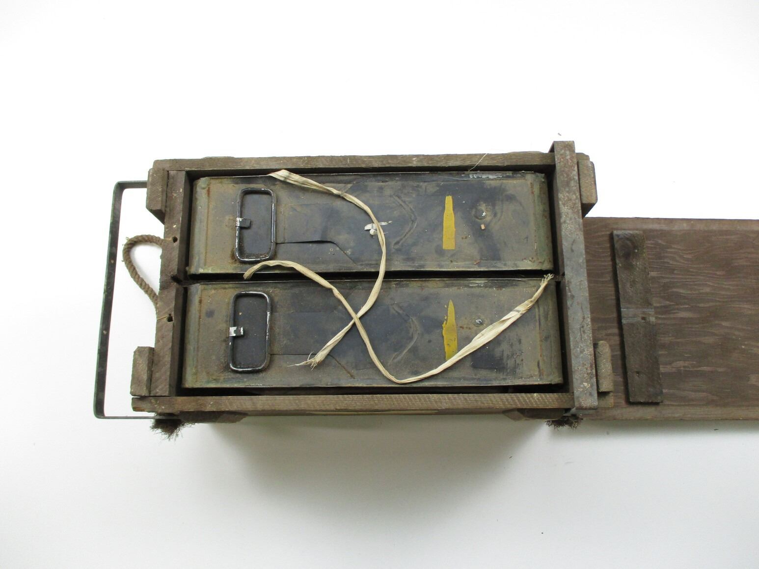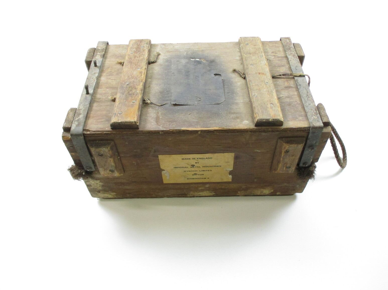 MILITARY .303 BR AMMO LOT, APPROX 45.0 LBS, LOT INCLUDES WOODEN CASE, APPROX 17" X 9" X 10", 2 SEALED TINS, AMMO ON VICKERS BELTS, MFG'D BY IMPERIAL METAL INC., LABEL IS BLACKED OUT, THERE ARE NEW SHIPPING RESTRICTIONS, PLEASE MAKE SURE YOU HAVE READ AND CONFIRMED WE CAN SHIP TO YOU BEFORE BIDDING ON THIS LOT. PLEASE SEE LOT 0 IN THIS SESSION. NO REFUNDS WILL BE ISSUED, OR BIDS RETRACTED