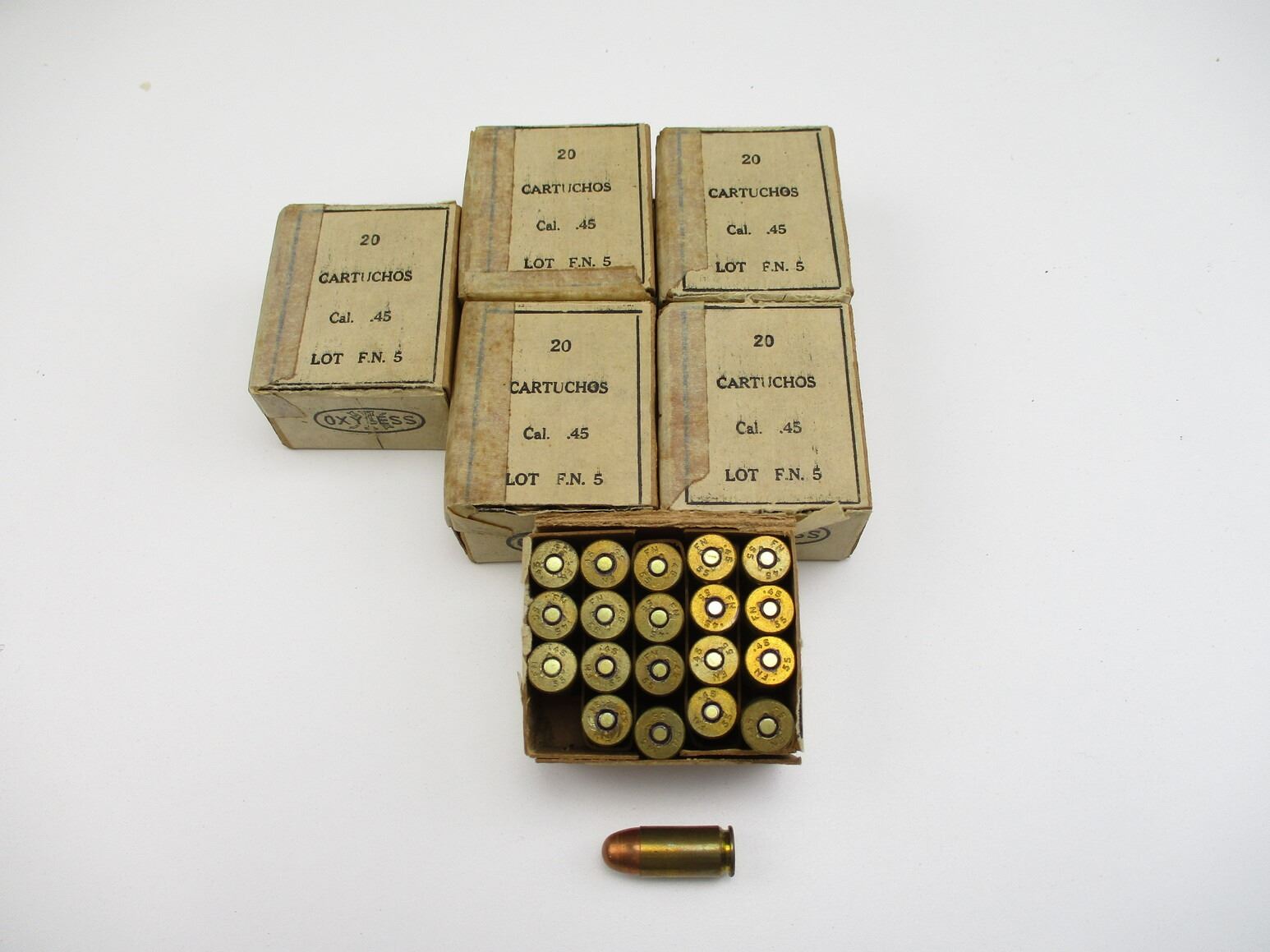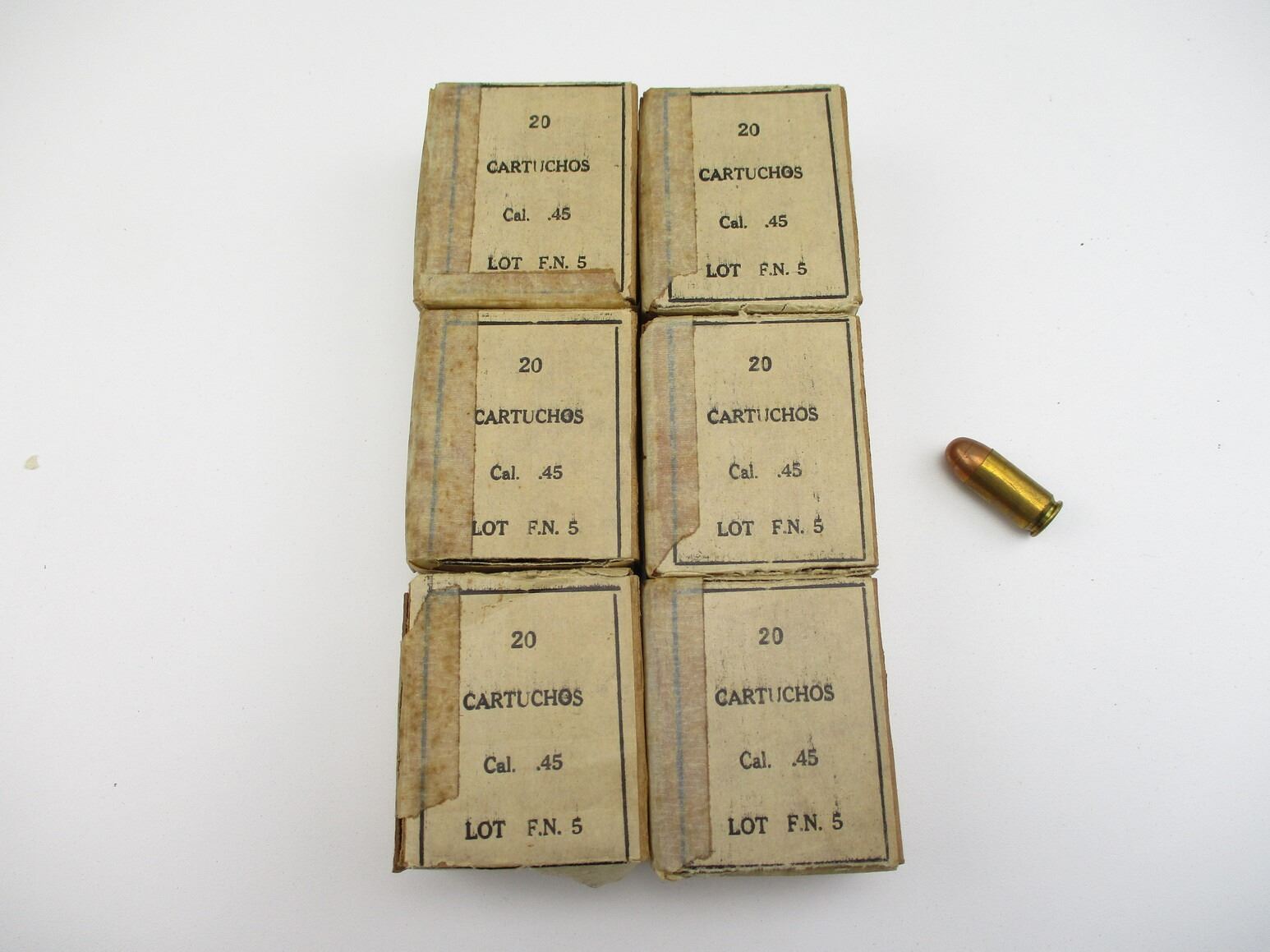 MILITARY .45 ACP AMMO LOT, 120 RNDS, IN ORIGINAL PKGS, SOME STILL SEALED, THERE ARE NEW SHIPPING RESTRICTIONS, PLEASE MAKE SURE YOU HAVE READ AND CONFIRMED WE CAN SHIP TO YOU BEFORE BIDDING ON THIS LOT. PLEASE SEE LOT 0 IN THIS SESSION. NO REFUNDS WILL BE ISSUED, OR BIDS RETRACTED
