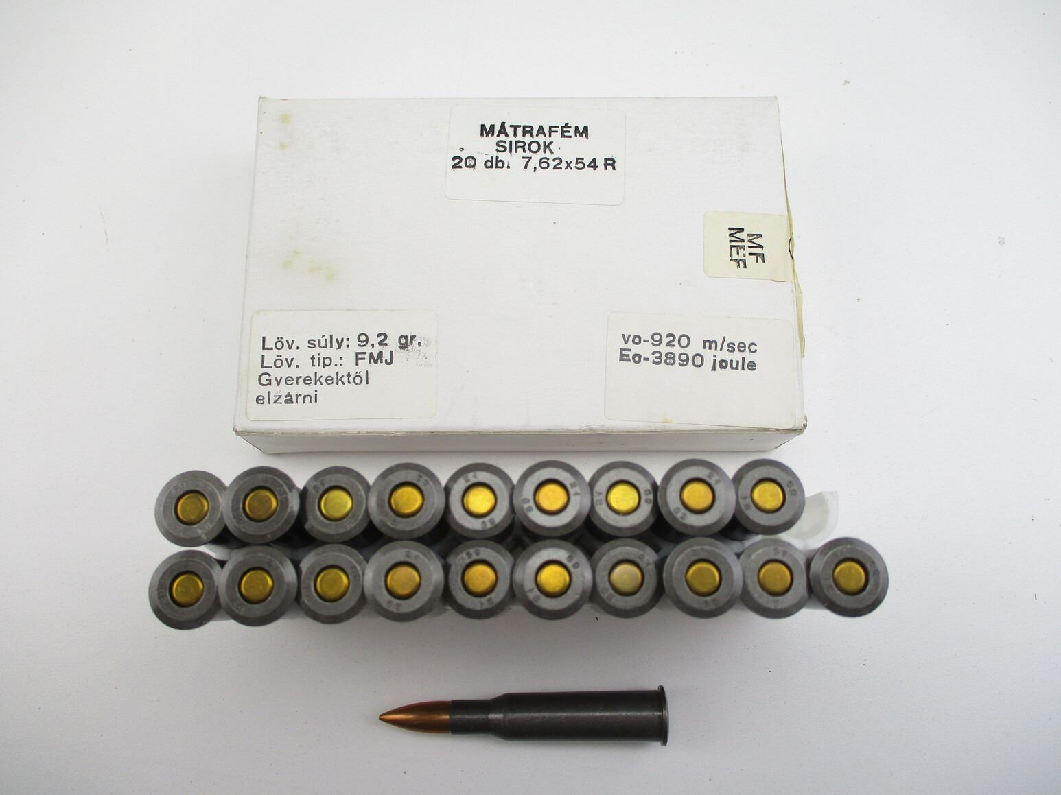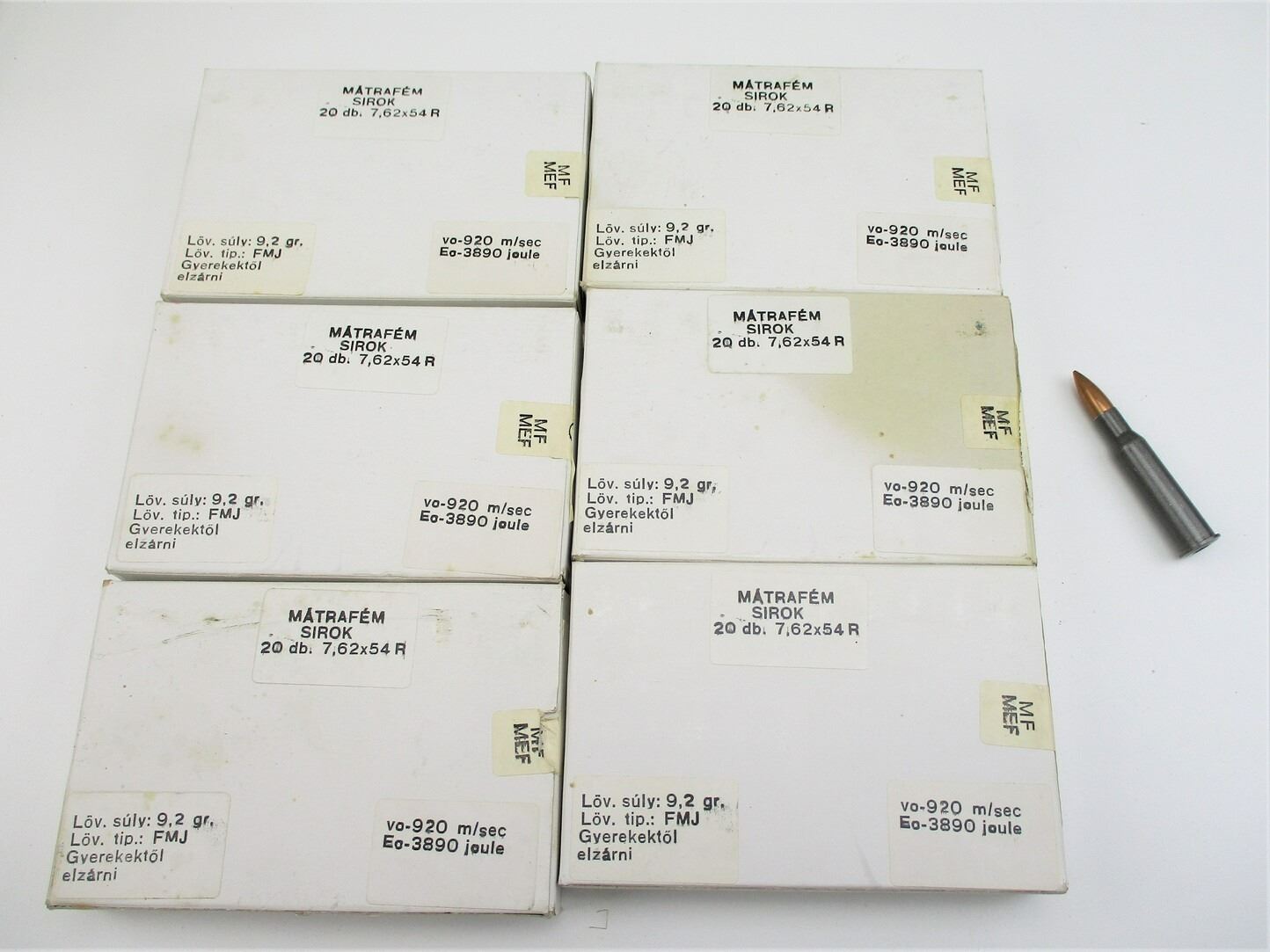 MILITARY 7.62X54R AMMO LOT, 120 RNDS, HUNGARIAN, IN ORIGINAL PKGS, THERE ARE NEW SHIPPING RESTRICTIONS, PLEASE MAKE SURE YOU HAVE READ AND CONFIRMED WE CAN SHIP TO YOU BEFORE BIDDING ON THIS LOT. PLEASE SEE LOT 0 IN THIS SESSION. NO REFUNDS WILL BE ISSUED, OR BIDS RETRACTED