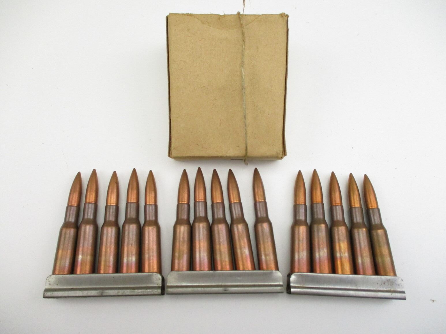 MILITARY 7.62X54R COMBLOC AMMO LOT, 90 RNDS ON STRIPPER CLIPS IN ORIGINAL PKGS, SOME BOXES ARE SEALED, THERE ARE NEW SHIPPING RESTRICTIONS, PLEASE MAKE SURE YOU HAVE READ AND CONFIRMED WE CAN SHIP TO YOU BEFORE BIDDING ON THIS LOT. PLEASE SEE LOT 0 IN THIS SESSION. NO REFUNDS WILL BE ISSUED, OR BIDS RETRACTED