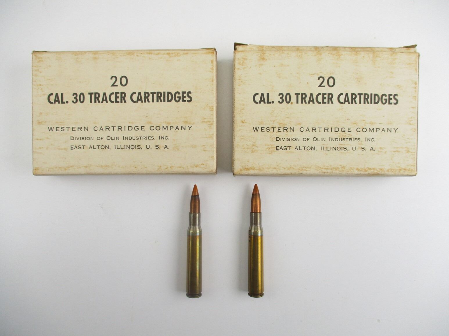 MILITARY WESTERN CARTRIDGE COMPANY .30-06 TRACERS AMMO, 40 RNDS, DATED 1955, THERE ARE NEW SHIPPING RESTRICTIONS, PLEASE MAKE SURE YOU HAVE READ AND CONFIRMED WE CAN SHIP TO YOU BEFORE BIDDING ON THIS LOT. PLEASE SEE LOT 0 IN THIS SESSION. NO REFUNDS WILL BE ISSUED, OR BIDS RETRACTED