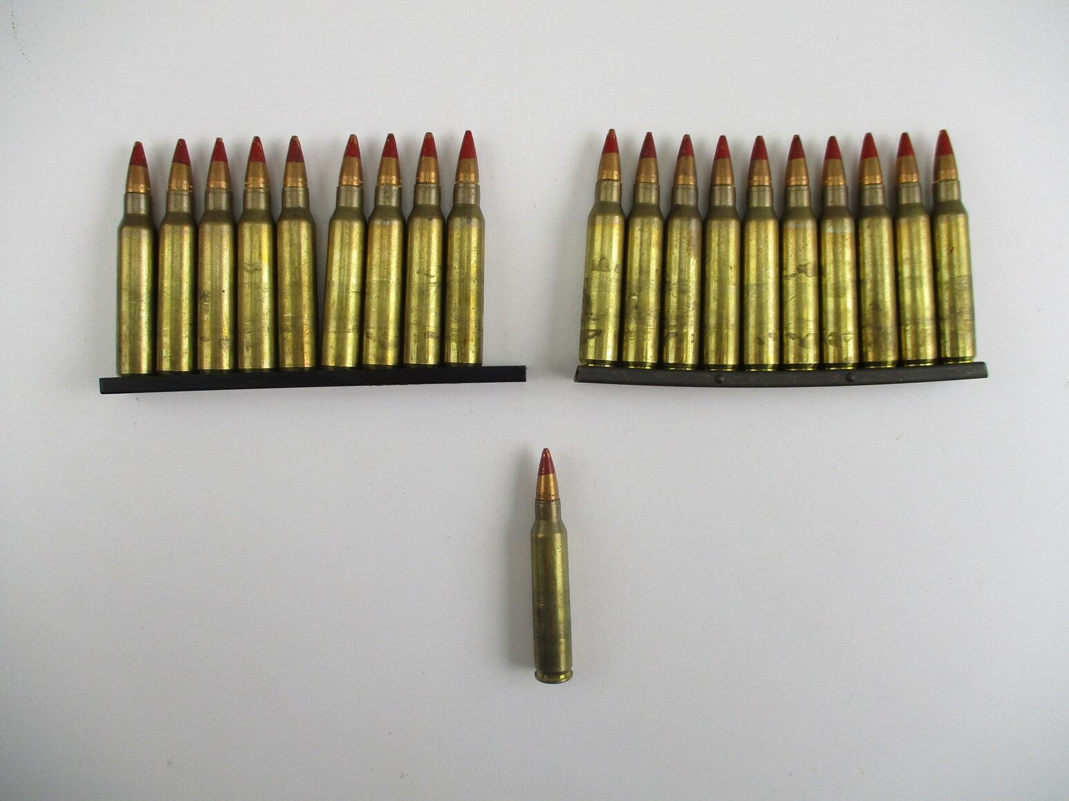 MILITARY 5.56MM TRACERS AMMO, 20 RNDS, 2 STRIPPER CLIPS, IVI, THERE ARE NEW SHIPPING RESTRICTIONS, PLEASE MAKE SURE YOU HAVE READ AND CONFIRMED WE CAN SHIP TO YOU BEFORE BIDDING ON THIS LOT. PLEASE SEE LOT 0 IN THIS SESSION. NO REFUNDS WILL BE ISSUED, OR BIDS RETRACTED