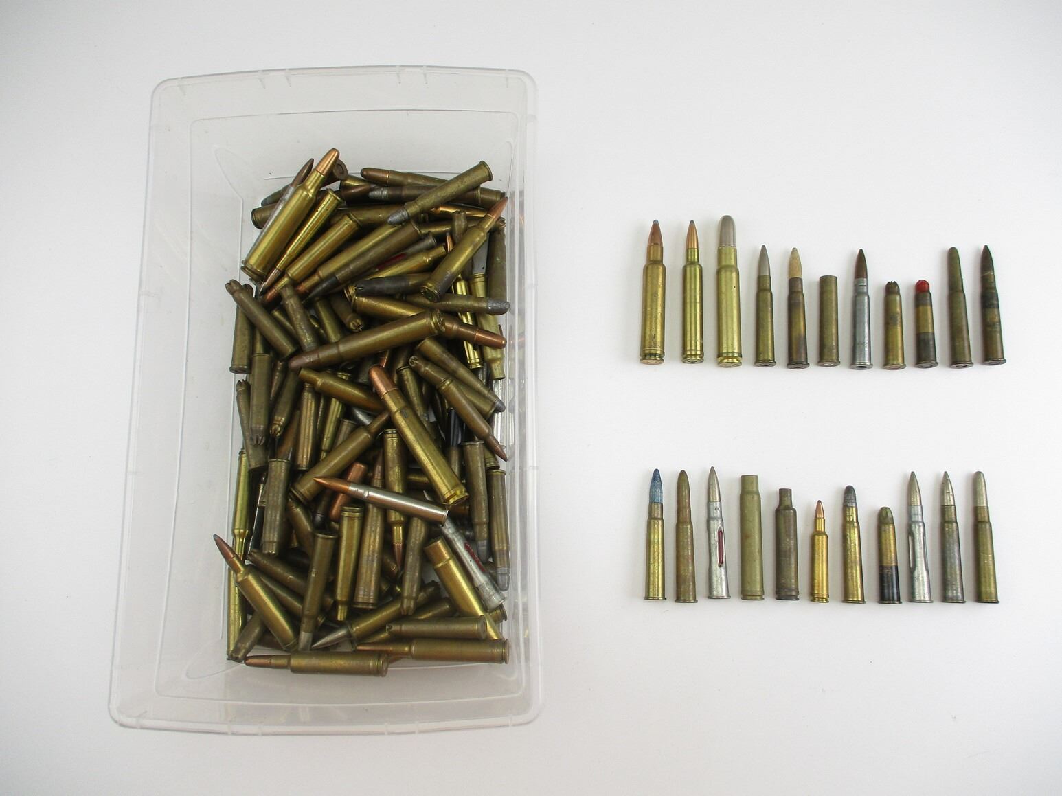 MILITARY ASSORTED AMMO LOT, APPROX 7.4 LBS, VARIOUS CALIBERS INCLUDING: .303 SPRINGFIELD, 6.5MM, 7.62X39, ETC., LOT MAY INCLUDE: BRASS, BLANKS, DUMMY'S, DAMAGED RNDS, FACTORY RNDS, ETC., THERE ARE NEW SHIPPING RESTRICTIONS, PLEASE MAKE SURE YOU HAVE READ AND CONFIRMED WE CAN SHIP TO YOU BEFORE BIDDING ON THIS LOT. PLEASE SEE LOT 0 IN THIS SESSION. NO REFUNDS WILL BE ISSUED, OR BIDS RETRACTED