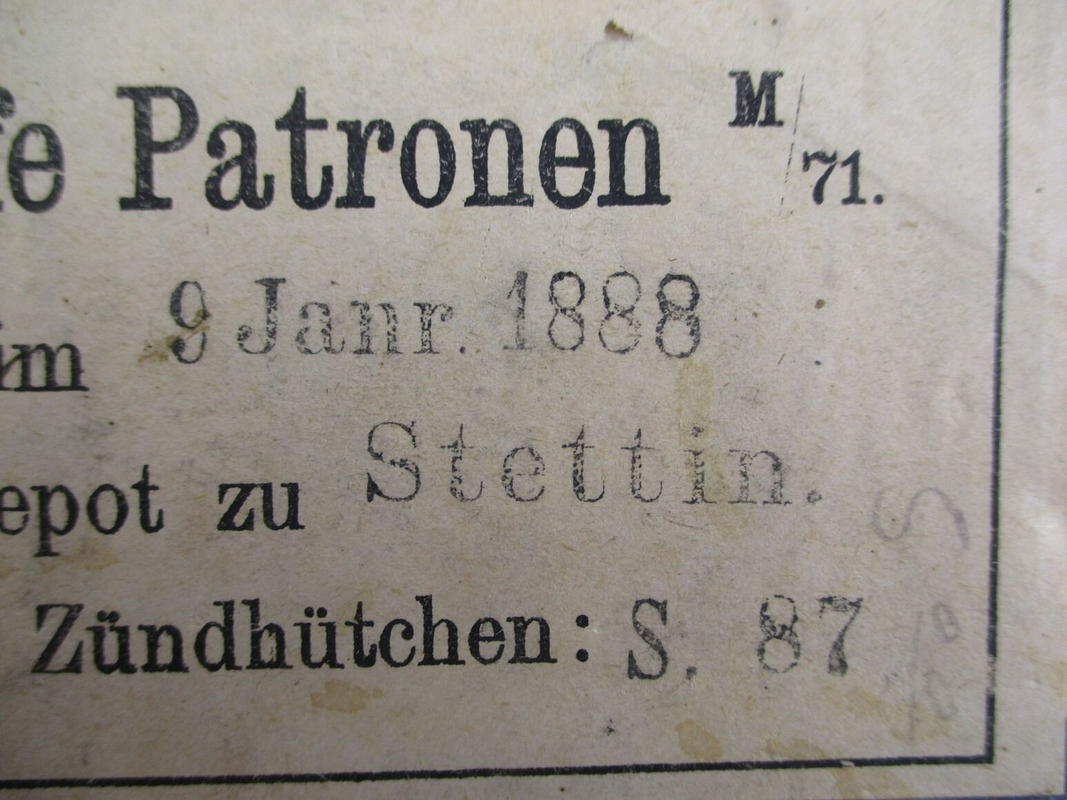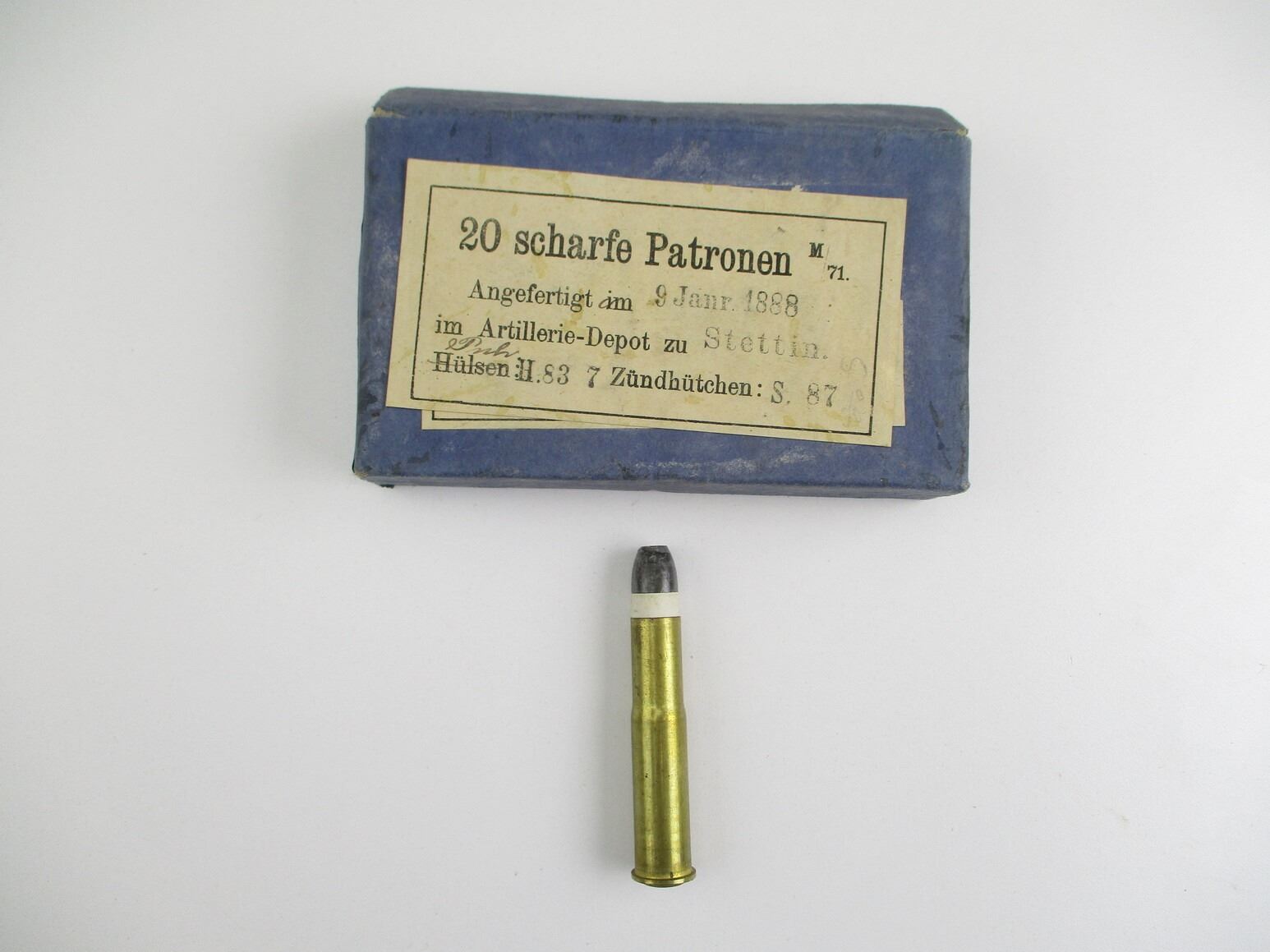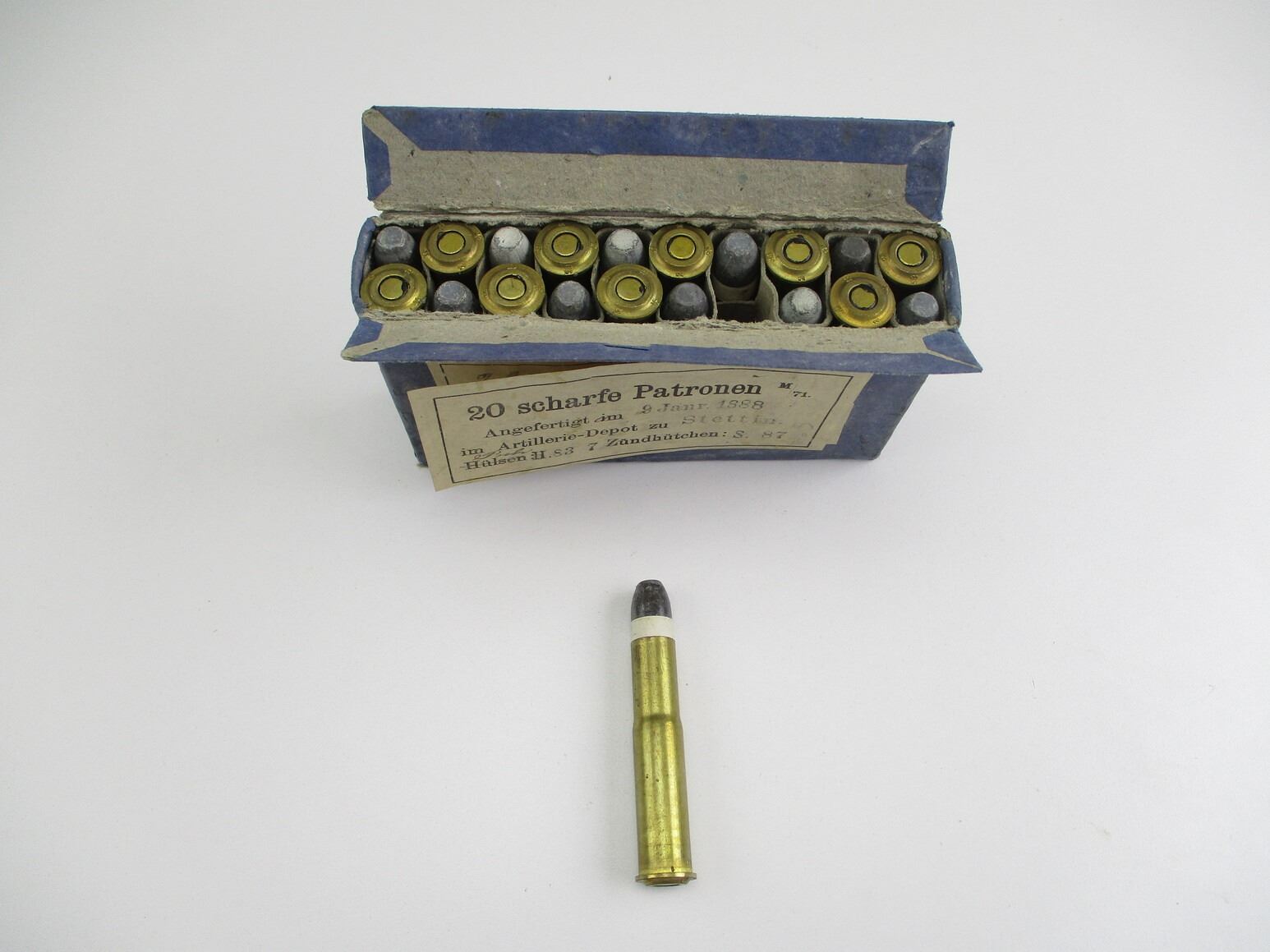 MILITARY GERMAN .43 MAUSER AMMO, 20 RNDS, DATED 9 JANUARY 1888, THERE ARE NEW SHIPPING RESTRICTIONS, PLEASE MAKE SURE YOU HAVE READ AND CONFIRMED WE CAN SHIP TO YOU BEFORE BIDDING ON THIS LOT. PLEASE SEE LOT 0 IN THIS SESSION. NO REFUNDS WILL BE ISSUED, OR BIDS RETRACTED