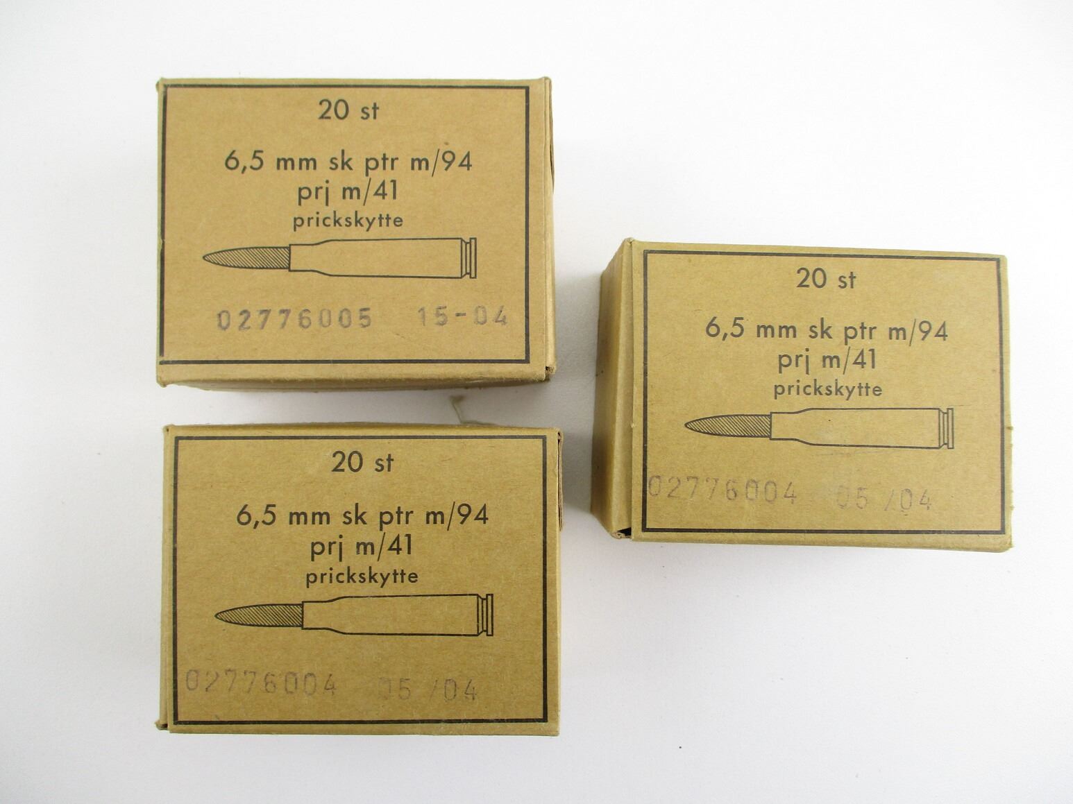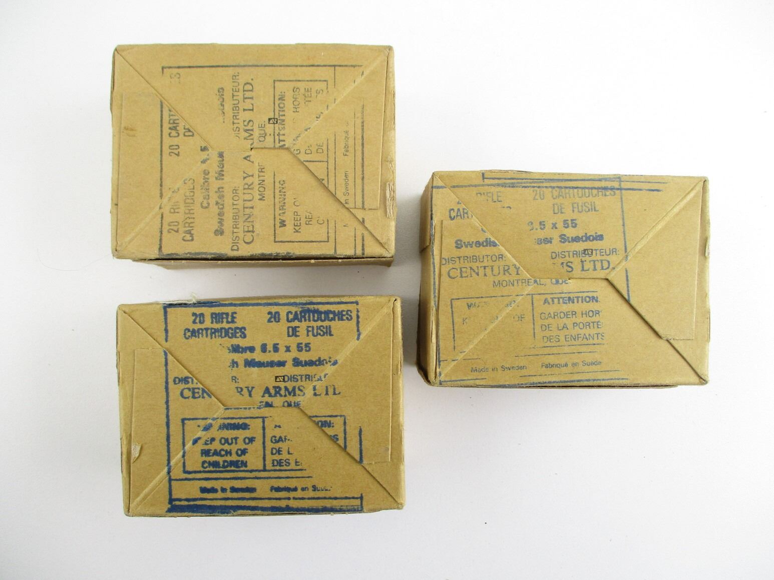 MILITARY 6.5X55 SWEDISH AMMO, 60 RNDS, UNOPENED BOXES, THERE ARE NEW SHIPPING RESTRICTIONS, PLEASE MAKE SURE YOU HAVE READ AND CONFIRMED WE CAN SHIP TO YOU BEFORE BIDDING ON THIS LOT. PLEASE SEE LOT 0 IN THIS SESSION. NO REFUNDS WILL BE ISSUED, OR BIDS RETRACTED