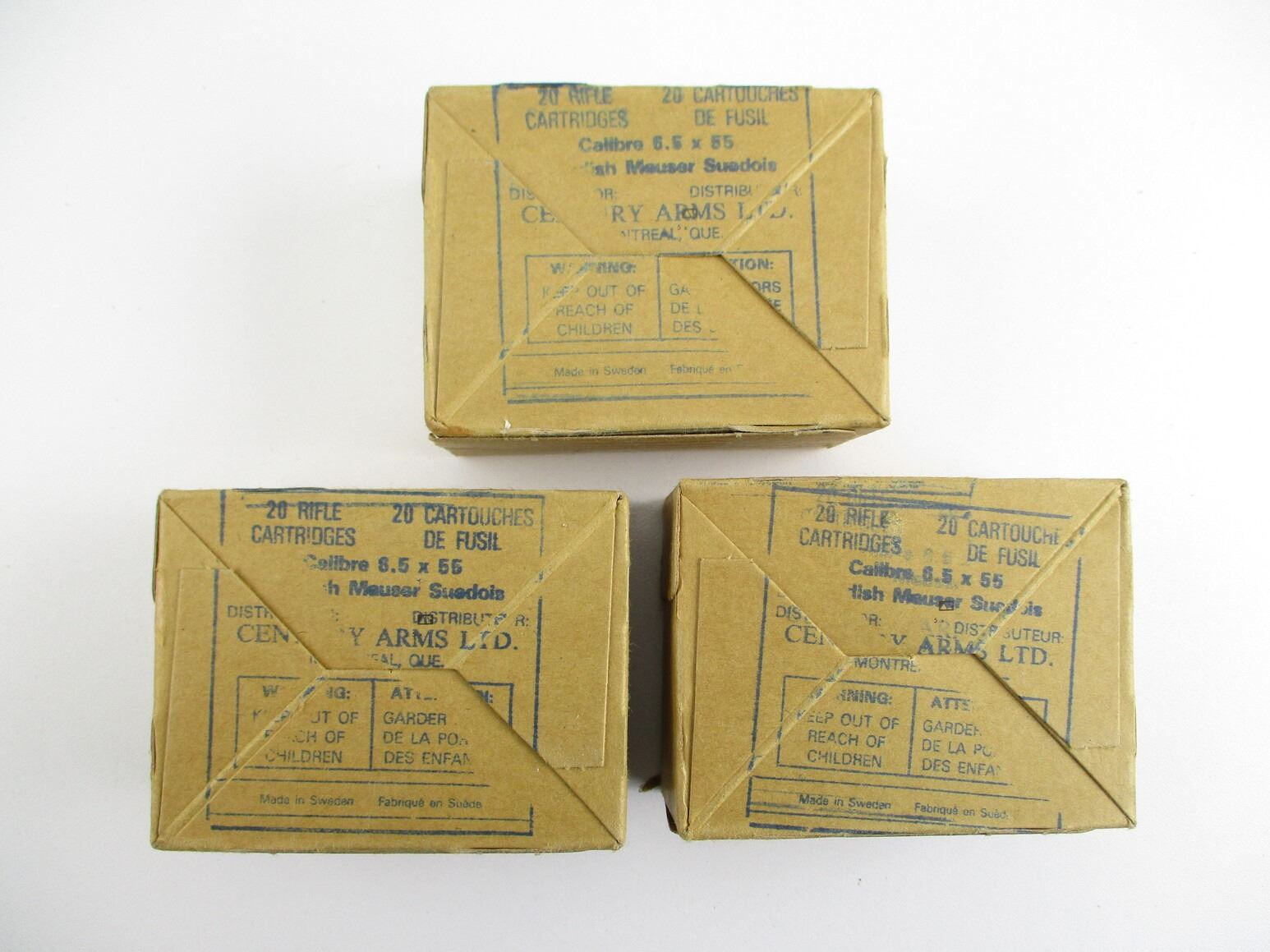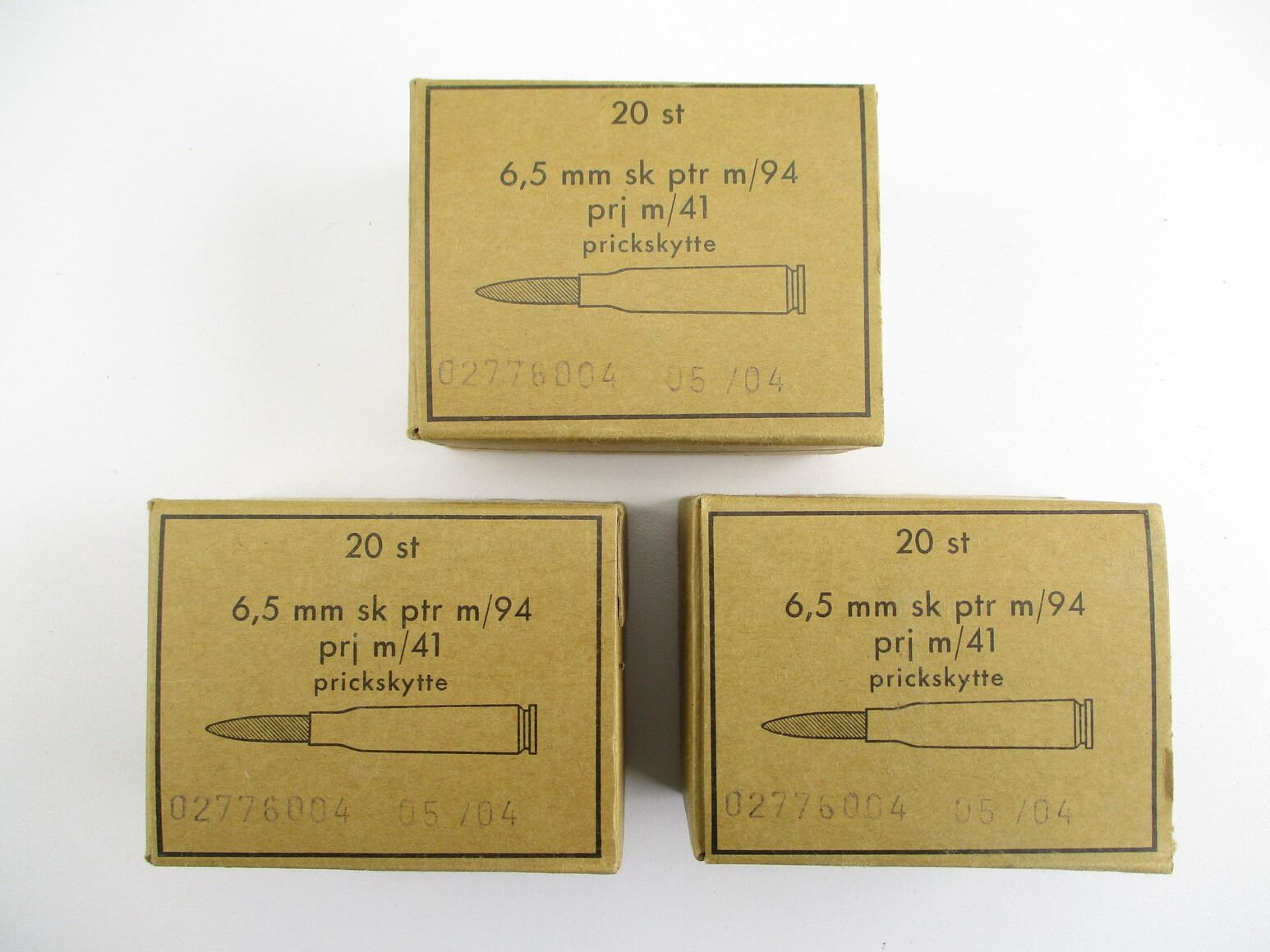 MILITARY 6.5X55 SWEDISH AMMO, 60 RNDS, UNOPENED BOXES, THERE ARE NEW SHIPPING RESTRICTIONS, PLEASE MAKE SURE YOU HAVE READ AND CONFIRMED WE CAN SHIP TO YOU BEFORE BIDDING ON THIS LOT. PLEASE SEE LOT 0 IN THIS SESSION. NO REFUNDS WILL BE ISSUED, OR BIDS RETRACTED