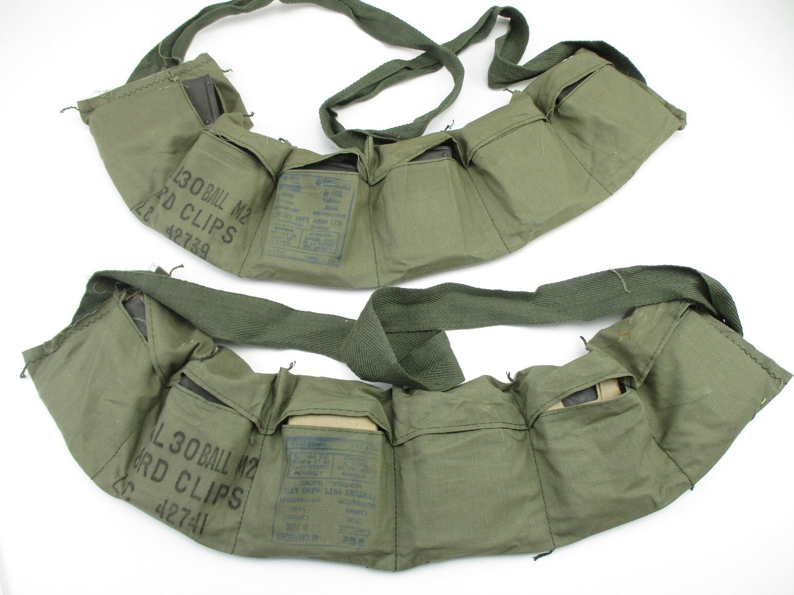 MILITARY .30-06 TRACERS AND BANDOLIER LOT, 88 RNDS, 11 ENBLOC CLIPS, LOT INCLUDES (40) .30-06 TRACERS, LOT ALSO INCLUDES (2) BANDOLIERS, VARIOUS MARKINGS, THERE ARE NEW SHIPPING RESTRICTIONS, PLEASE MAKE SURE YOU HAVE READ AND CONFIRMED WE CAN SHIP TO YOU BEFORE BIDDING ON THIS LOT. PLEASE SEE LOT 0 IN THIS SESSION. NO REFUNDS WILL BE ISSUED, OR BIDS RETRACTED