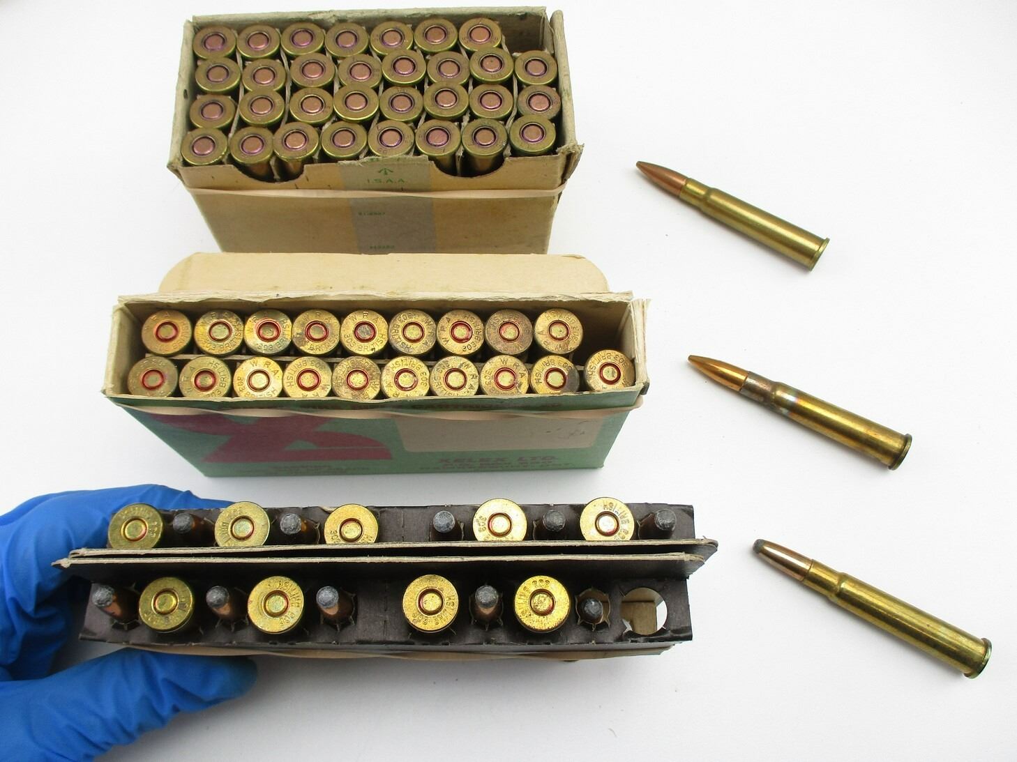 MILITARY ASSORTED .303 BRITISH AMMO, 140 RNDS, VARIOUS MFG'S, VARIOUS DATES, THERE ARE NEW SHIPPING RESTRICTIONS, PLEASE MAKE SURE YOU HAVE READ AND CONFIRMED WE CAN SHIP TO YOU BEFORE BIDDING ON THIS LOT. PLEASE SEE LOT 0 IN THIS SESSION. NO REFUNDS WILL BE ISSUED, OR BIDS RETRACTED