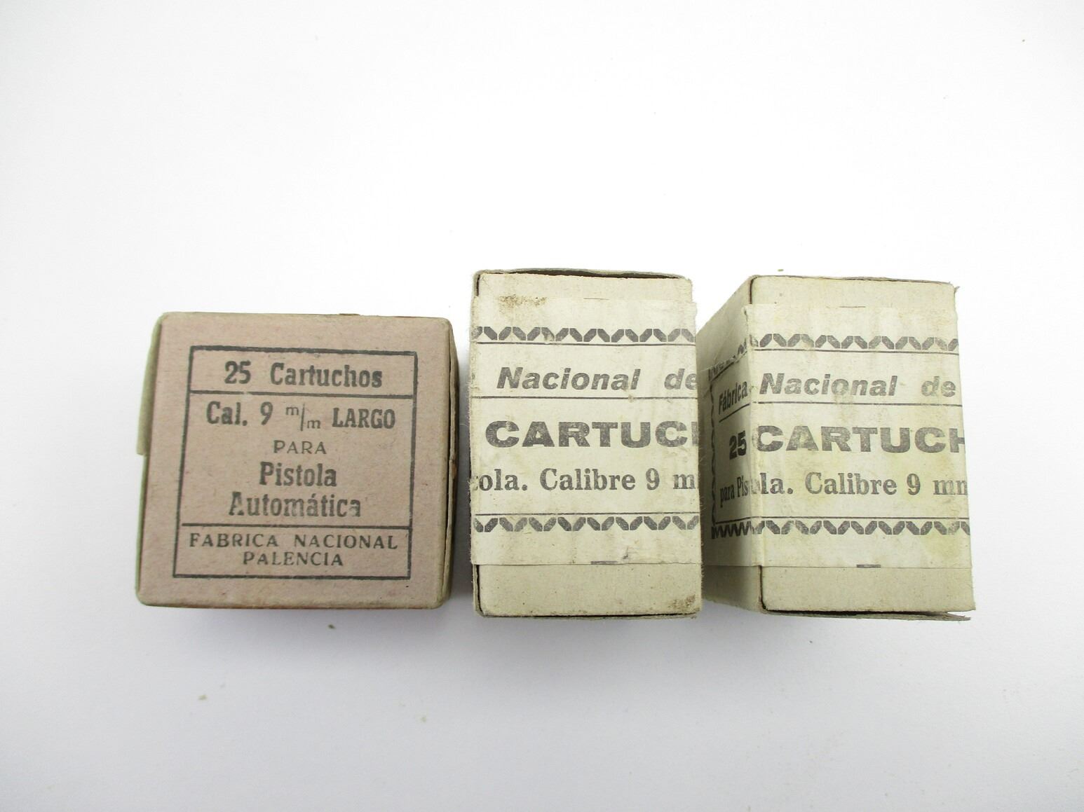 MILITARY ASSORTED 9MM LARGO AMMO, 75 RNDS, UNOPENED BOXES, ONE BOX IS DATED 1945, THERE ARE NEW SHIPPING RESTRICTIONS, PLEASE MAKE SURE YOU HAVE READ AND CONFIRMED WE CAN SHIP TO YOU BEFORE BIDDING ON THIS LOT. PLEASE SEE LOT 0 IN THIS SESSION. NO REFUNDS WILL BE ISSUED, OR BIDS RETRACTED