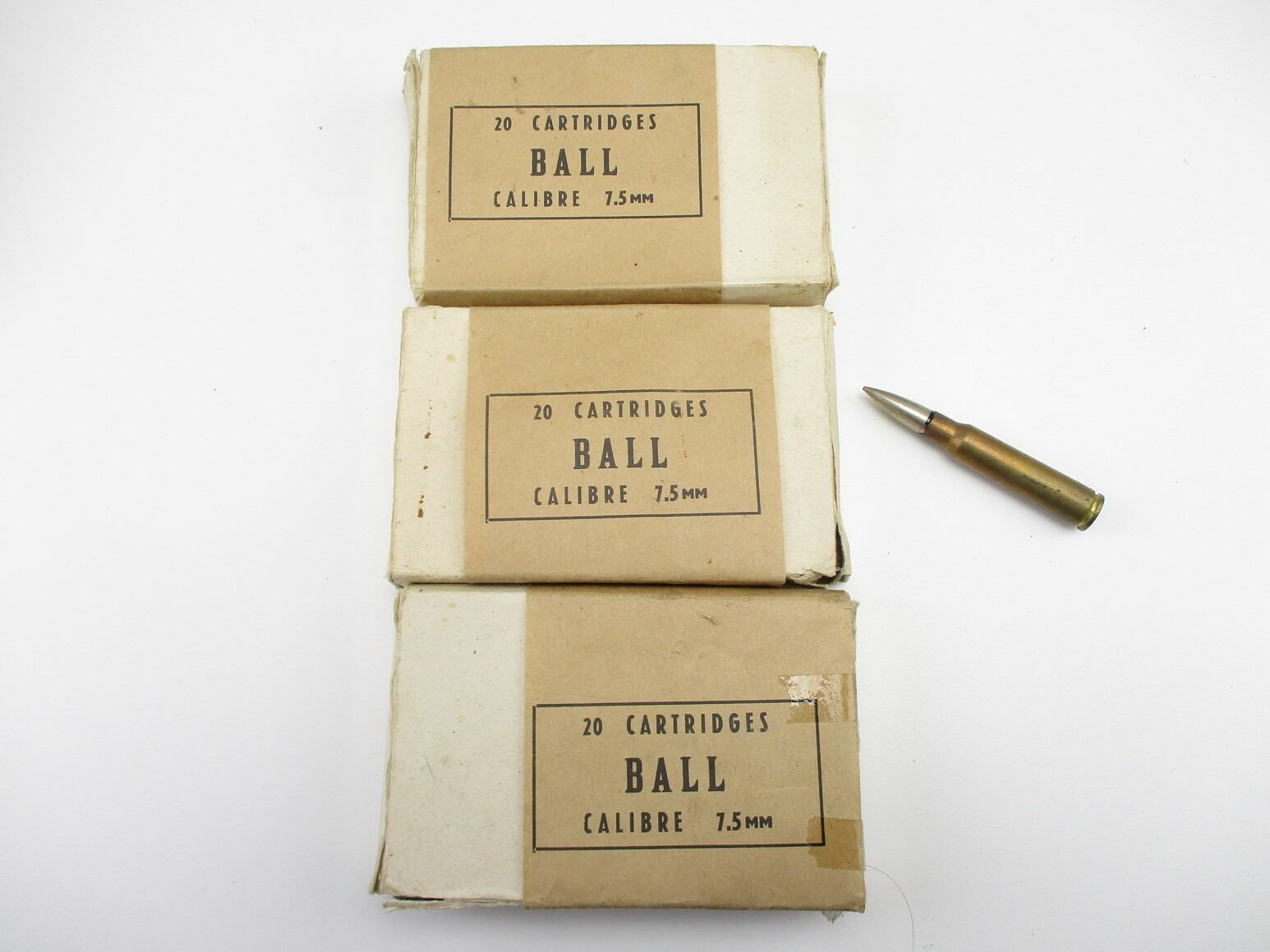 MILITARY 7.5MM BALL AMMO, 60 RNDS, THERE ARE NEW SHIPPING RESTRICTIONS, PLEASE MAKE SURE YOU HAVE READ AND CONFIRMED WE CAN SHIP TO YOU BEFORE BIDDING ON THIS LOT. PLEASE SEE LOT 0 IN THIS SESSION. NO REFUNDS WILL BE ISSUED, OR BIDS RETRACTED