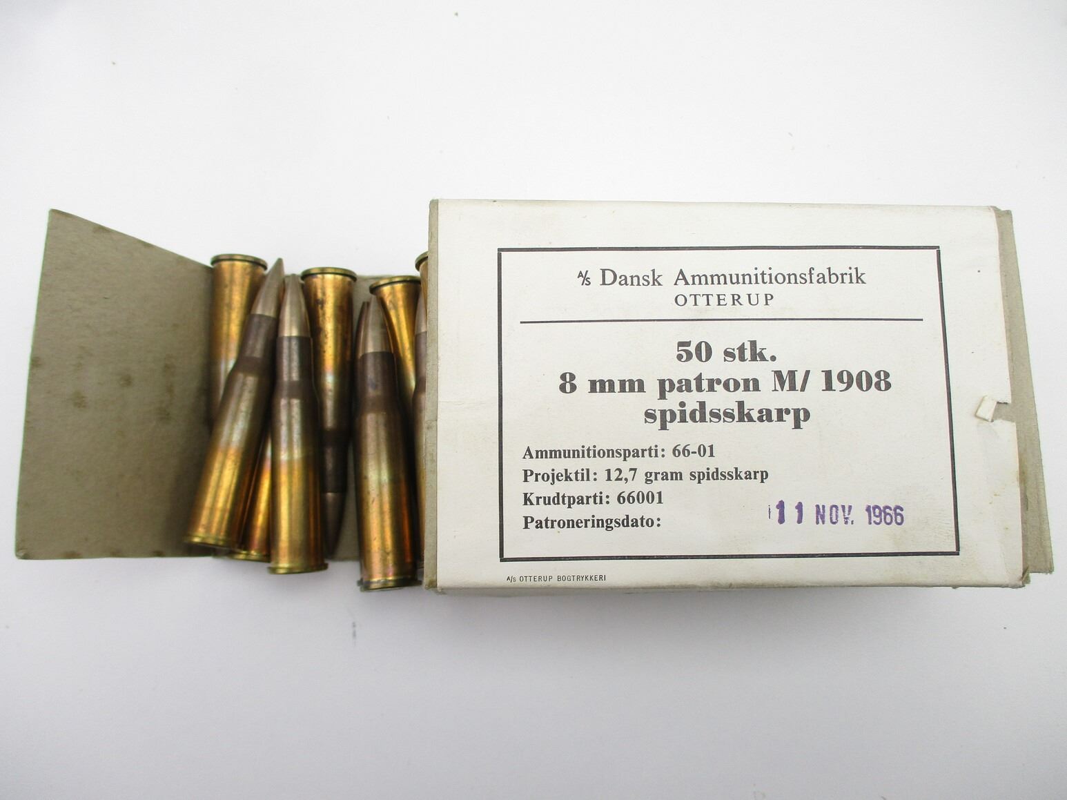 MILITARY DANISH 8X58R AMMO, 48 RNDS, BOX IS DATED NOV 11 1966, THERE ARE NEW SHIPPING RESTRICTIONS, PLEASE MAKE SURE YOU HAVE READ AND CONFIRMED WE CAN SHIP TO YOU BEFORE BIDDING ON THIS LOT. PLEASE SEE LOT 0 IN THIS SESSION. NO REFUNDS WILL BE ISSUED, OR BIDS RETRACTED