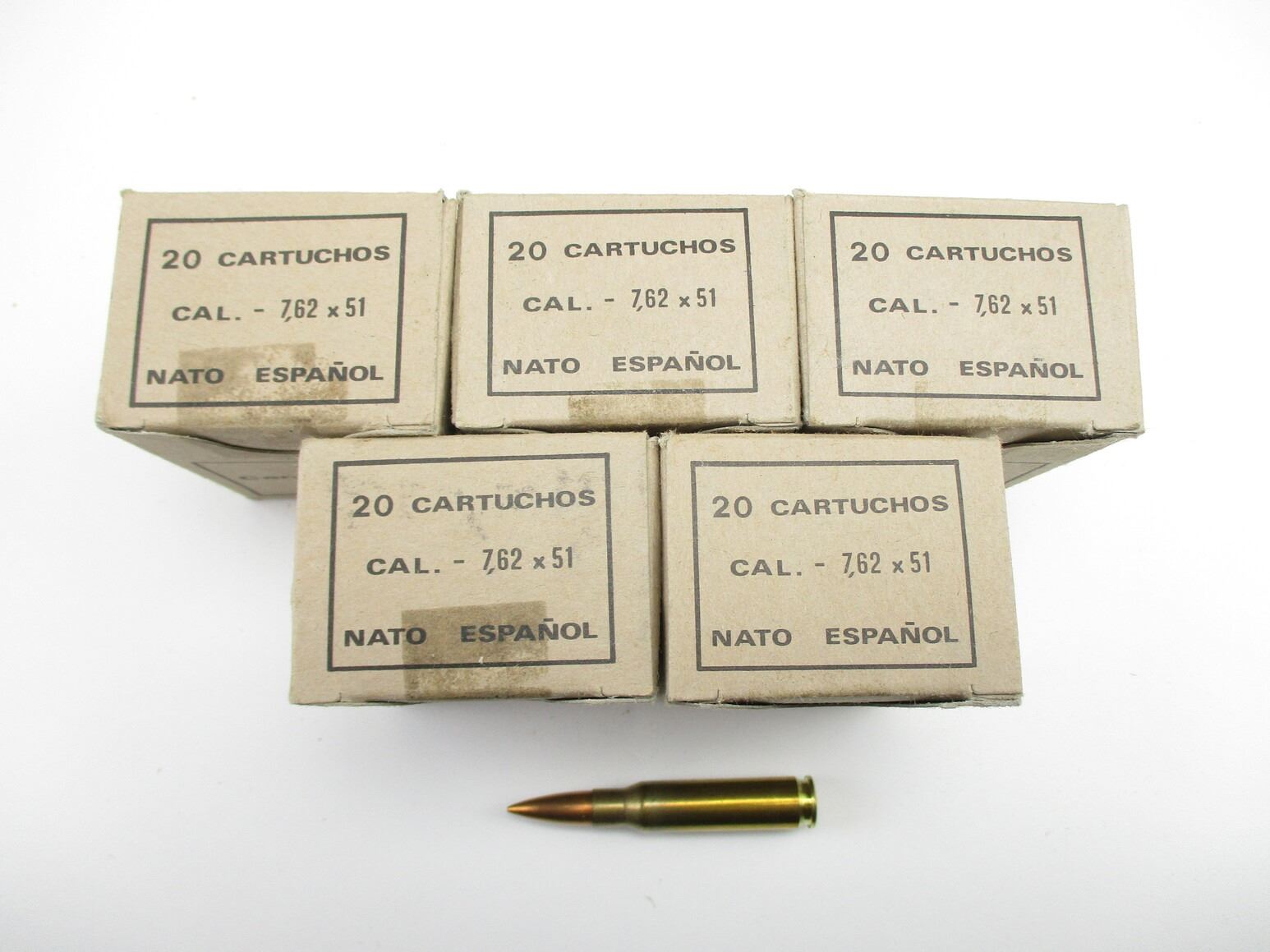 MILITARY SPANISH 7.62 NATO AMMO, 100 RNDS, DATED 1979, THERE ARE NEW SHIPPING RESTRICTIONS, PLEASE MAKE SURE YOU HAVE READ AND CONFIRMED WE CAN SHIP TO YOU BEFORE BIDDING ON THIS LOT. PLEASE SEE LOT 0 IN THIS SESSION. NO REFUNDS WILL BE ISSUED, OR BIDS RETRACTED