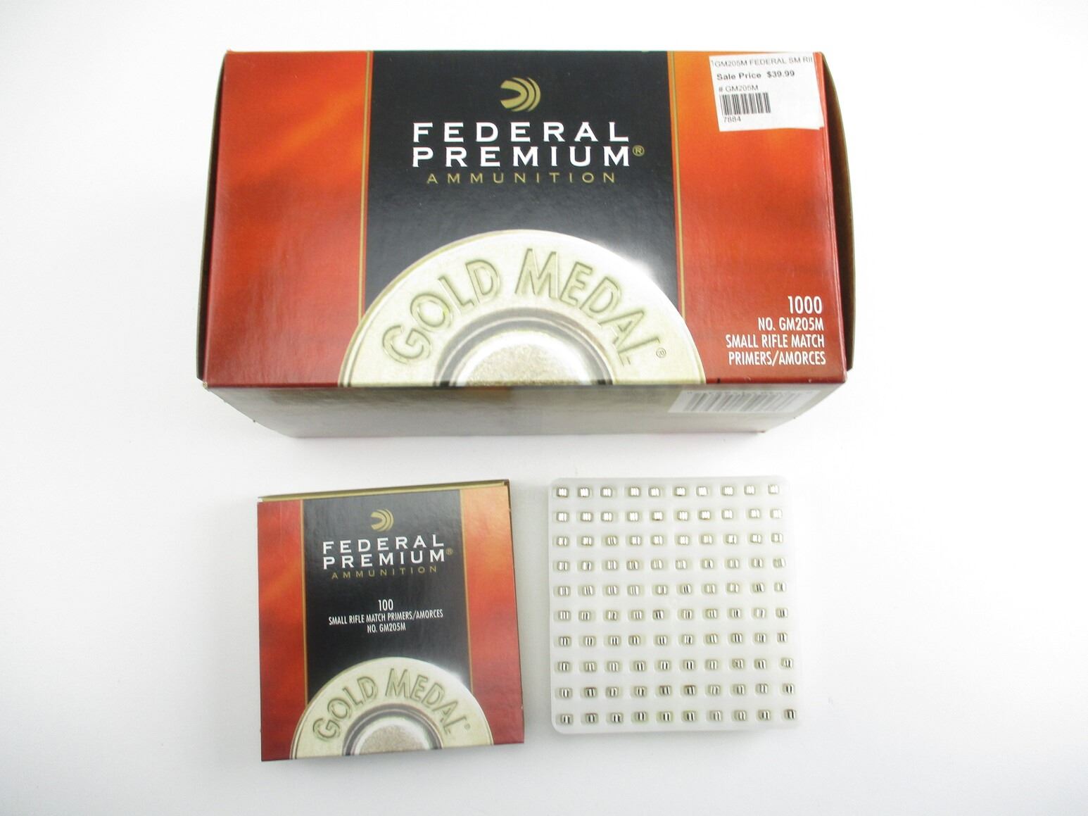 FEDERAL NO.GM205M SMALL RIFLE MATCH PRIMERS LOT, APPROX 1000 PRIMERS, THERE ARE NEW SHIPPING RESTRICTIONS, PLEASE MAKE SURE YOU HAVE READ AND CONFIRMED WE CAN SHIP TO YOU BEFORE BIDDING ON THIS LOT. PLEASE SEE LOT 0 IN THIS SESSION. NO REFUNDS WILL BE ISSUED, OR BIDS RETRACTED