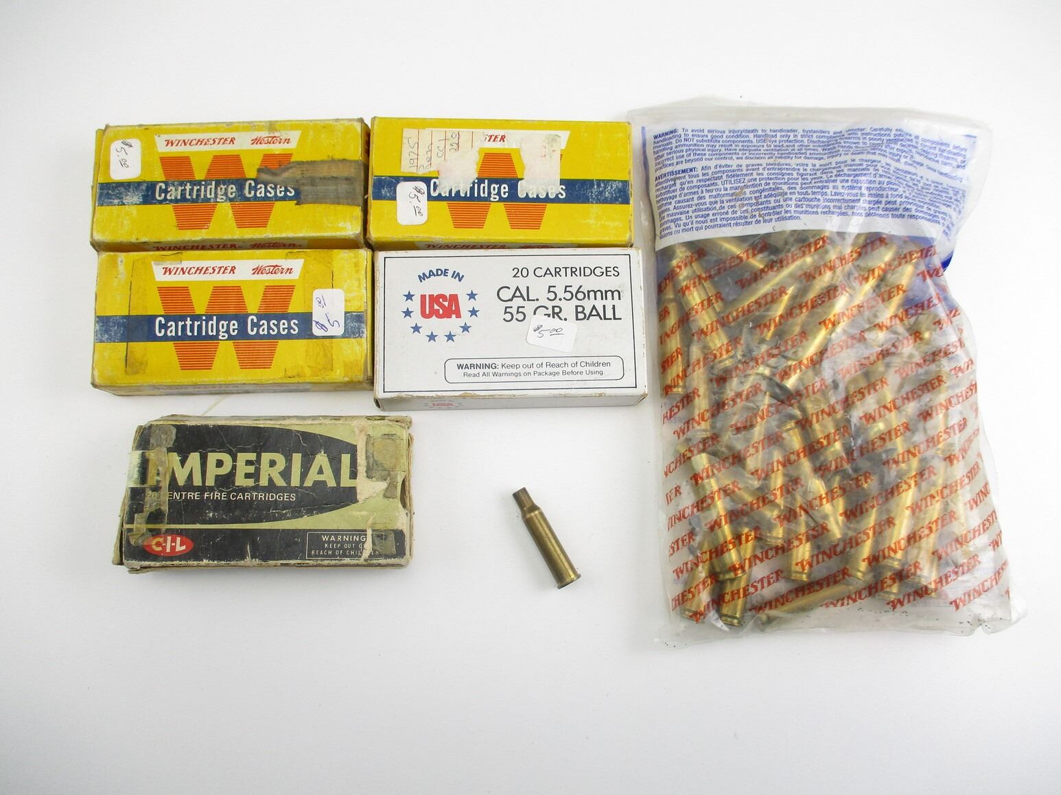 PRIMED/NON-PRIMED ASSORTED CASES LOT, 83 PRIMED, 68 NON-PRIMED, VARIOUS CALIBERS INCLUDING: .308 WIN, .222 REM, 5.56MM, ETC., VARIOUS MFG'S, THERE ARE NEW SHIPPING RESTRICTIONS, PLEASE MAKE SURE YOU HAVE READ AND CONFIRMED WE CAN SHIP TO YOU BEFORE BIDDING ON THIS LOT. PLEASE SEE LOT 0 IN THIS SESSION. NO REFUNDS WILL BE ISSUED, OR BIDS RETRACTED
