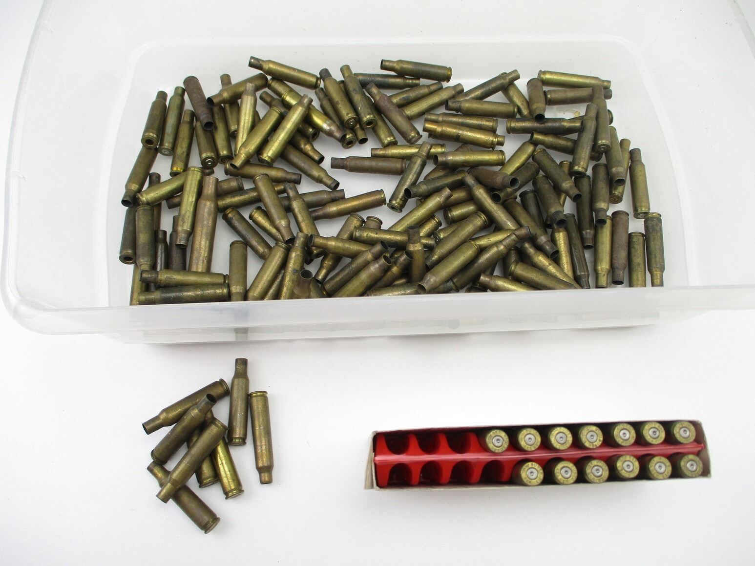 PRIMED/NON-PRIMED .222 REM CASES LOT , 8 PRIMED, 147 NON-PRIMED, MAY INCLUDE OTHER CALIBERS, THERE ARE NEW SHIPPING RESTRICTIONS, PLEASE MAKE SURE YOU HAVE READ AND CONFIRMED WE CAN SHIP TO YOU BEFORE BIDDING ON THIS LOT. PLEASE SEE LOT 0 IN THIS SESSION. NO REFUNDS WILL BE ISSUED, OR BIDS RETRACTED