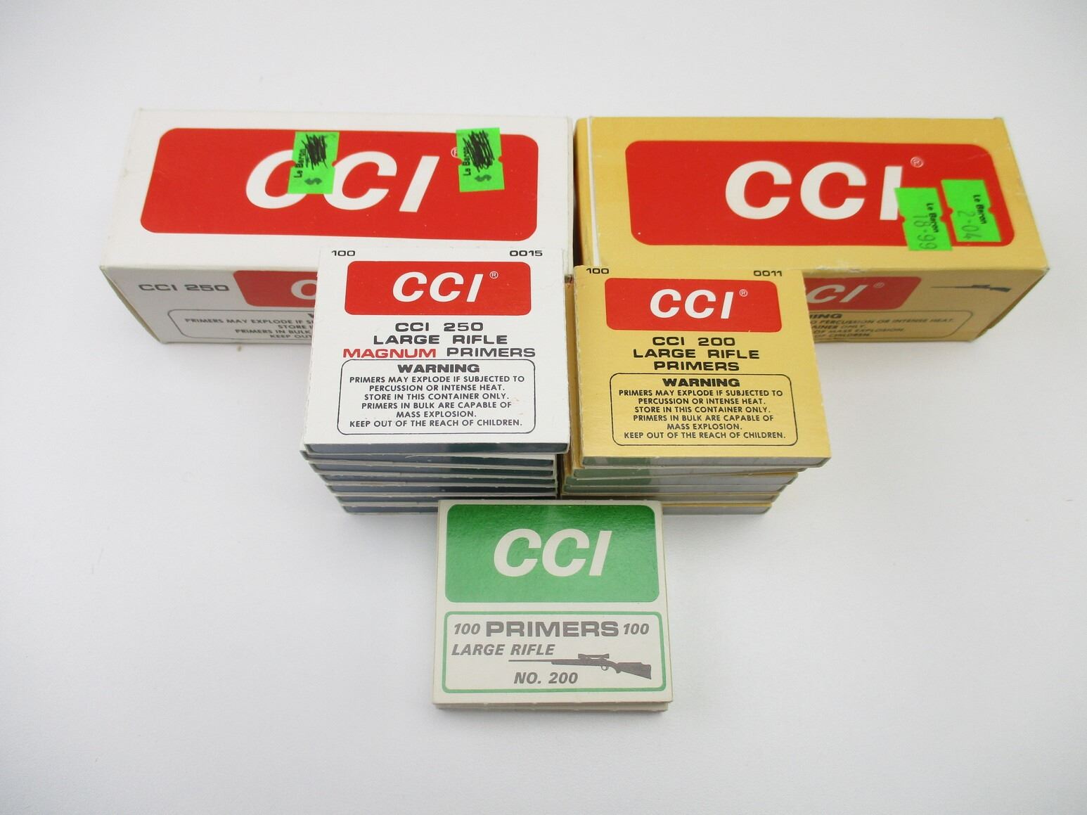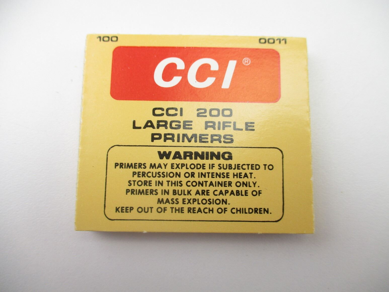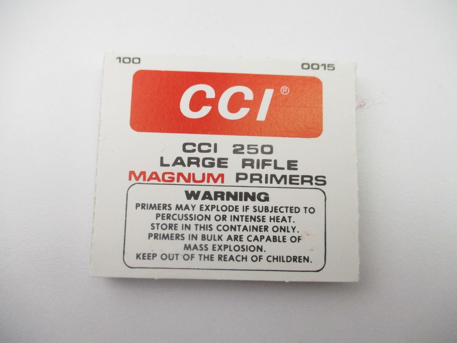 ASSORTED CCI LARGE RIFLE PRIMERS LOT , APPROX 1200 PRIMERS, INCLUDES: CCI NO.200, & CCI NO.250 MAGNUM, THERE ARE NEW SHIPPING RESTRICTIONS, PLEASE MAKE SURE YOU HAVE READ AND CONFIRMED WE CAN SHIP TO YOU BEFORE BIDDING ON THIS LOT. PLEASE SEE LOT 0 IN THIS SESSION. NO REFUNDS WILL BE ISSUED, OR BIDS RETRACTED