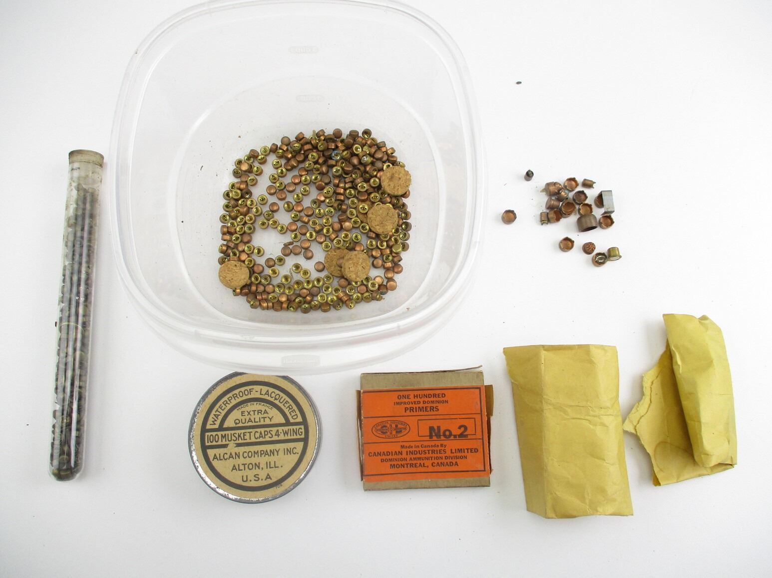 ASSORTED PRIMERS AND MUSKET CAPS LOT, APPROX 300, LOT INCLUDES ASSORTED PRIMERS, BERDAN PRIMERS, MUSKET CAPS, ETC., SEE PHOTOS., THERE ARE NEW SHIPPING RESTRICTIONS, PLEASE MAKE SURE YOU HAVE READ AND CONFIRMED WE CAN SHIP TO YOU BEFORE BIDDING ON THIS LOT. PLEASE SEE LOT 0 IN THIS SESSION. NO REFUNDS WILL BE ISSUED, OR BIDS RETRACTED