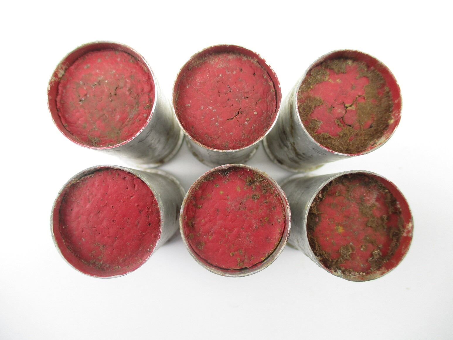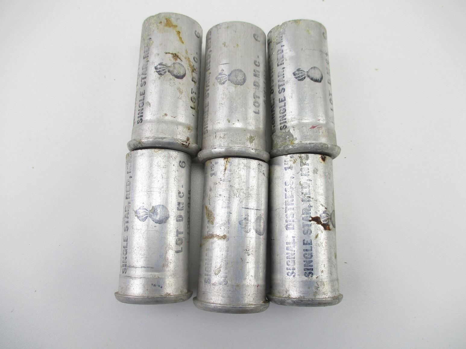 MILITARY 1 INCH FLARES LOT, 6 RNDS, DATED APRIL 1945, THERE ARE NEW SHIPPING RESTRICTIONS, PLEASE MAKE SURE YOU HAVE READ AND CONFIRMED WE CAN SHIP TO YOU BEFORE BIDDING ON THIS LOT. PLEASE SEE LOT 0 IN THIS SESSION. NO REFUNDS WILL BE ISSUED, OR BIDS RETRACTED