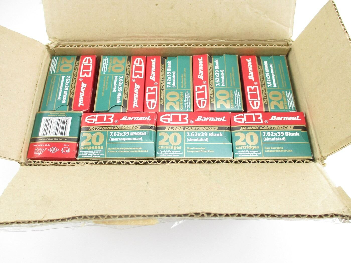 BARNAUL 7.62X39 BLANKS LOT, 500 RNDS, (25) BOXES OF 20 RNDS, THERE ARE NEW SHIPPING RESTRICTIONS, PLEASE MAKE SURE YOU HAVE READ AND CONFIRMED WE CAN SHIP TO YOU BEFORE BIDDING ON THIS LOT. PLEASE SEE LOT 0 IN THIS SESSION. NO REFUNDS WILL BE ISSUED, OR BIDS RETRACTED